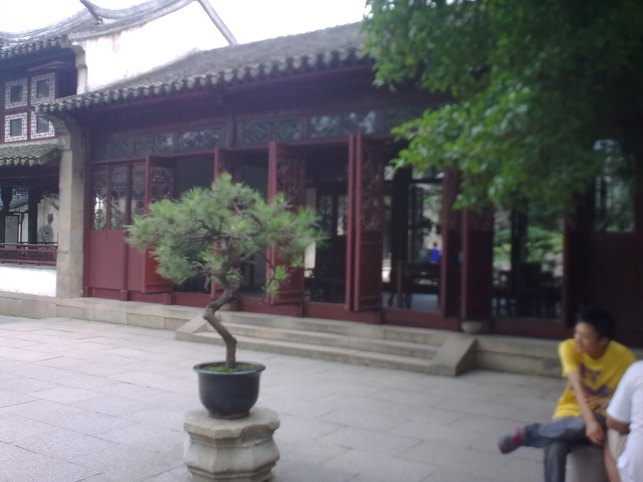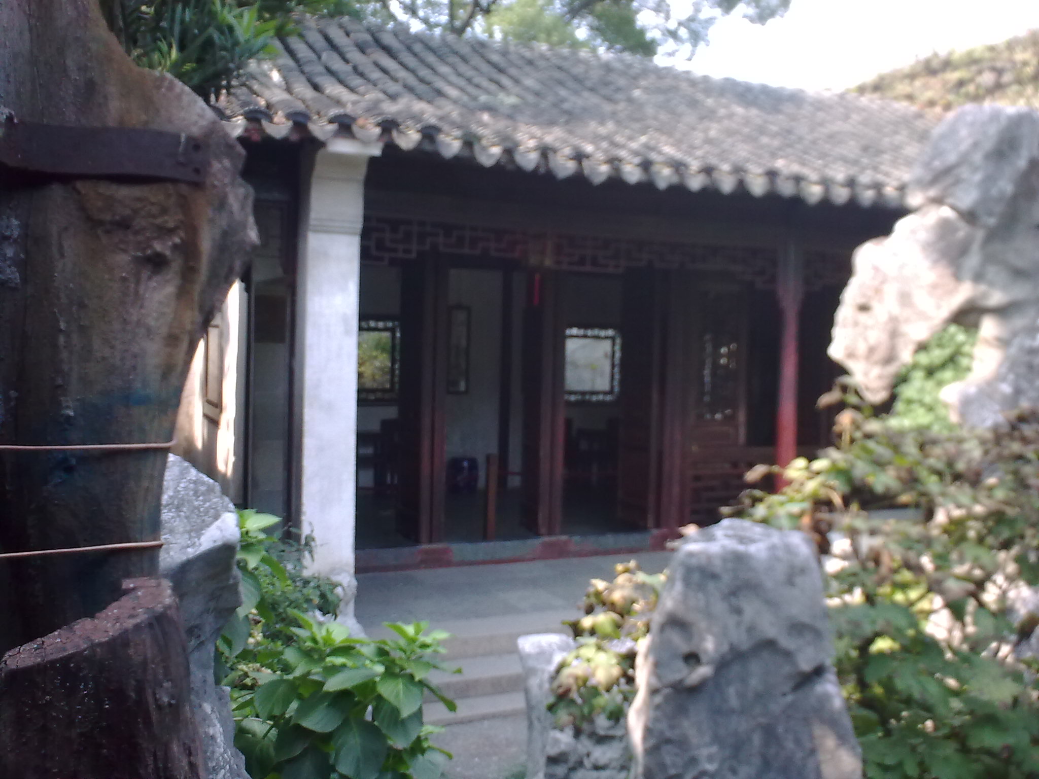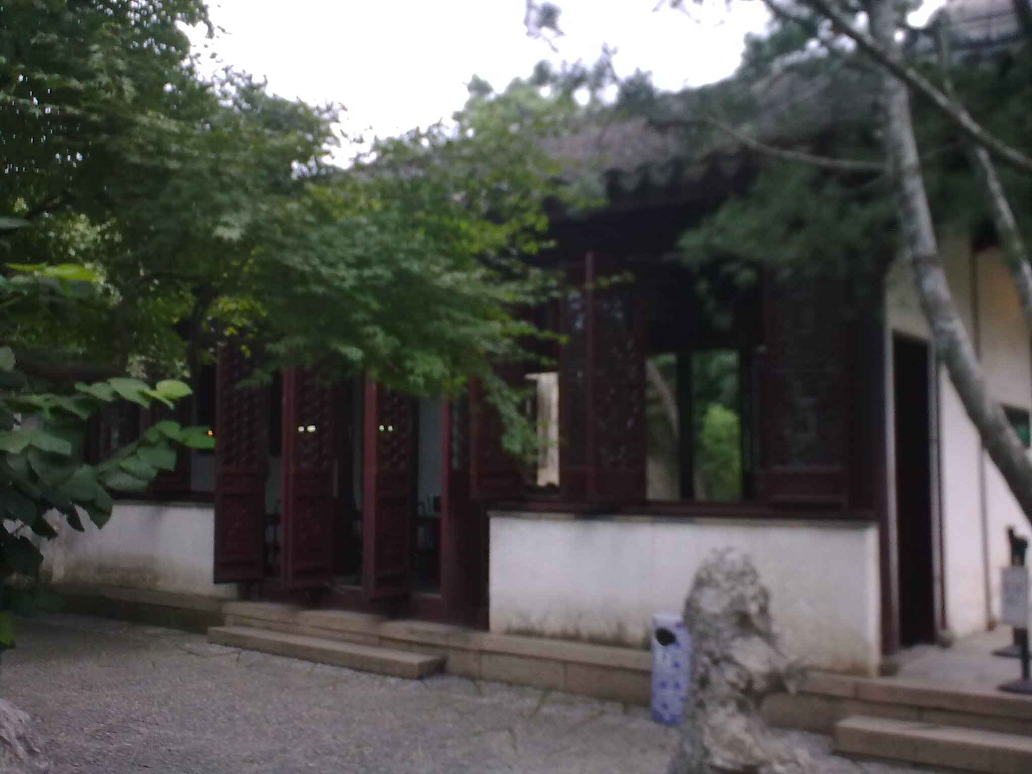 ![]() | 꽃길 옆 작은 집 () 지붕이 있는 통로, 연못을 향한 스크린 창문과 반대편의 두 개의 작은 하늘 우물로 구성. 하늘 우물에는 명나라 시대의 측백나무와 동백나무가 심어져 있다. |