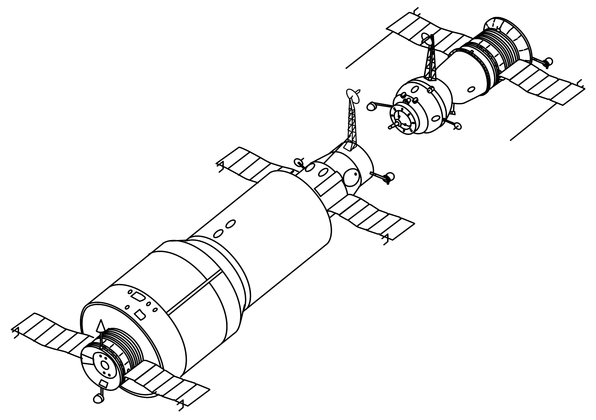 소련은 유인 달 궤도 및 착륙 계획을 추진, 소유스 우주선을 개발했으나 N1 로켓 개발 실패로 1974년 계획을 중단했다.[7] 달 경쟁에서 패배 후, 우주 정거장 개발에 집중, 살류트 출격 정거장을 시작으로 소유스를 이용해 우주 비행사를 수송했다.