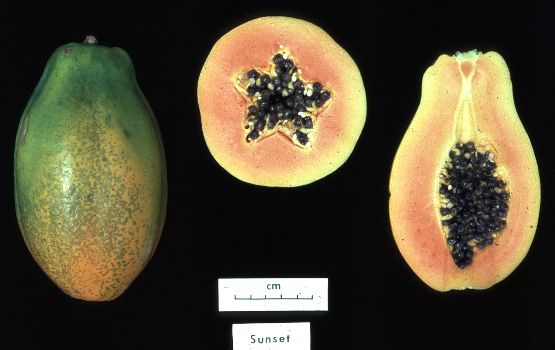 파파야는 환반 바이러스(PRSV)에 저항하도록 유전자 변형되었다. '선셋(Sunset)'은 PRSV 외피 단백질 유전자에 대해 동형 접합체인 유전자 변형 붉은 과육 파파야 품종이며, '레인보우(Rainbow)'는 '선셋'과 비유전자 변형 황색 과육 '카포호(Kapoho)'를 교배하여 개발된 황색 과육 F1 잡종이다.[83] 1998년에 승인되었으며,[84] 2010년까지 하와이 파파야의 80%가 유전자 변형되었다.[85] 뉴욕 타임스는 "이것 없이는 주의 파파야 산업이 붕괴되었을 것"이라고 말했다.[85] 중국 화남농업대학교가 개발한 유전자 변형 PRSV 저항성 파파야는 2006년에 처음으로 상업적 재배가 승인되었다. 2012년 기준 광둥성 재배 파파야의 95%, 하이난성 재배 파파야의 40%가 유전자 변형되었다.[86] 홍콩에서는 유전자 변형 파파야 재배 및 방출은 면제되지만, 재배 및 수입되는 파파야의 80% 이상이 유전자 변형되었다.[87][88]
