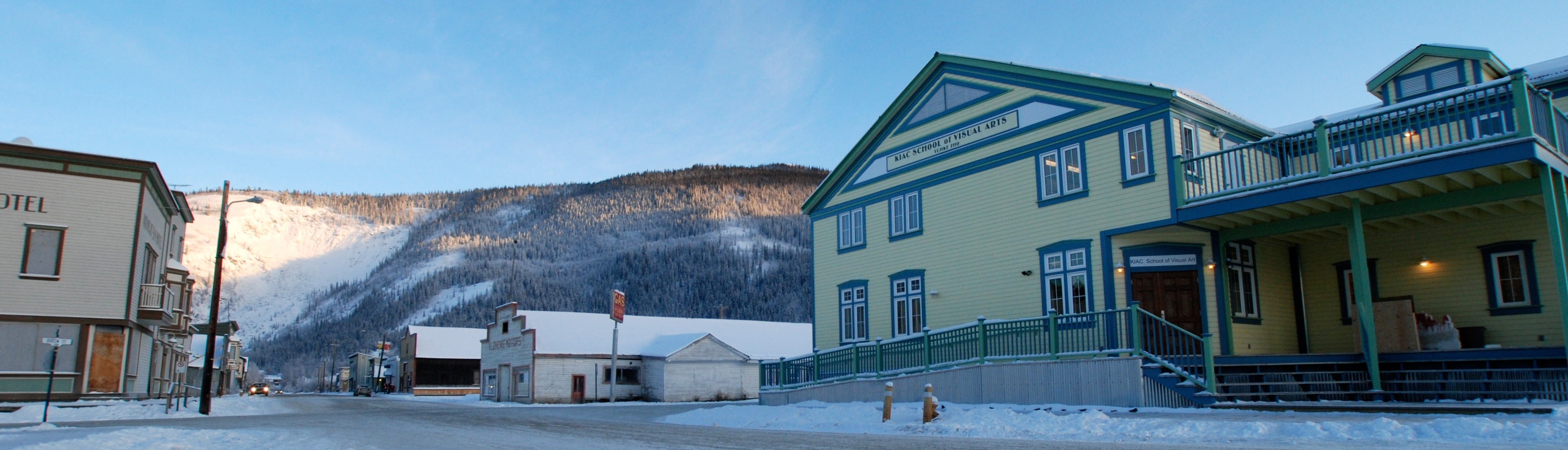 유콘 대학교가 도슨 시티 예술 협회, 트론데크 휘친 퍼스트 네이션과 공동으로 운영하는 미술 학교인 유콘 시각 예술 학교의 외부 모습.