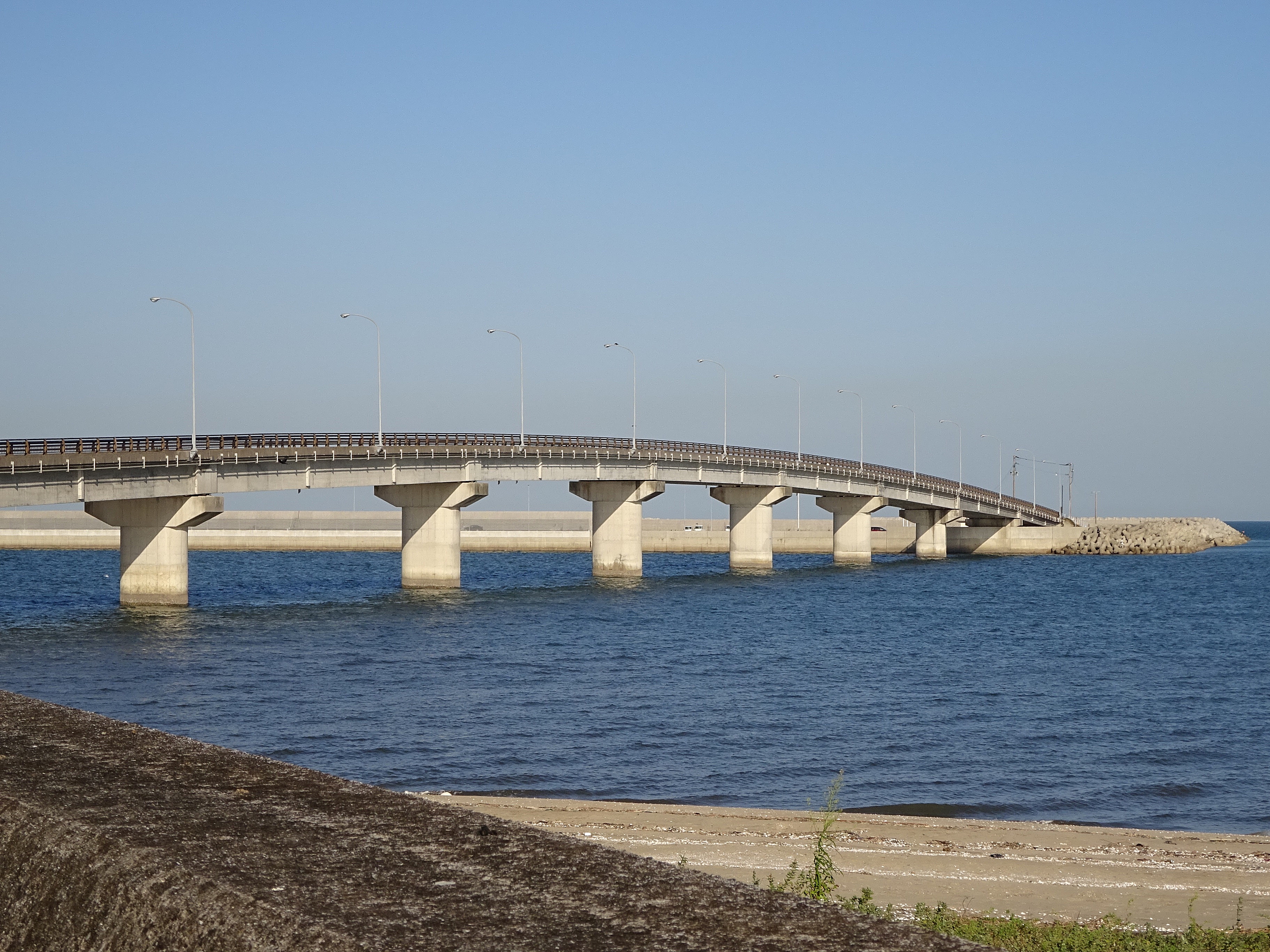 沓尾(쿠츠오) 어항은 간만의 영향으로 조업에 제약이 있고, 나가이(長井) 어항은 표사(漂砂)·유사(流砂)로 매몰되어, 2002년에 沓尾(쿠츠오)와 나가이(長井) 두 마을의 중간 지점에 매립하여 인공섬을 만들고 沓尾長井(쿠츠오나가이) 어항으로 통합하였다. 본토와는 장수대교(長寿大橋)로 연결된다.[9]