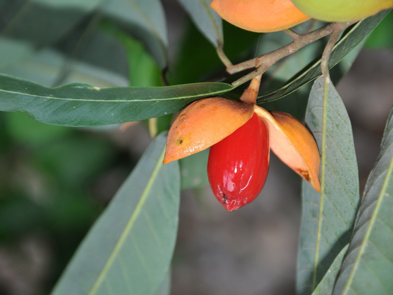 가종피는 얇지만 영양분이 풍부하며, 이것을 보상으로 구세계에서는 코뿔새류, 비둘기류, 극락조류가, 신세계에서는 큰부리새류나 영장류가 종자 산포를 한다.[25]