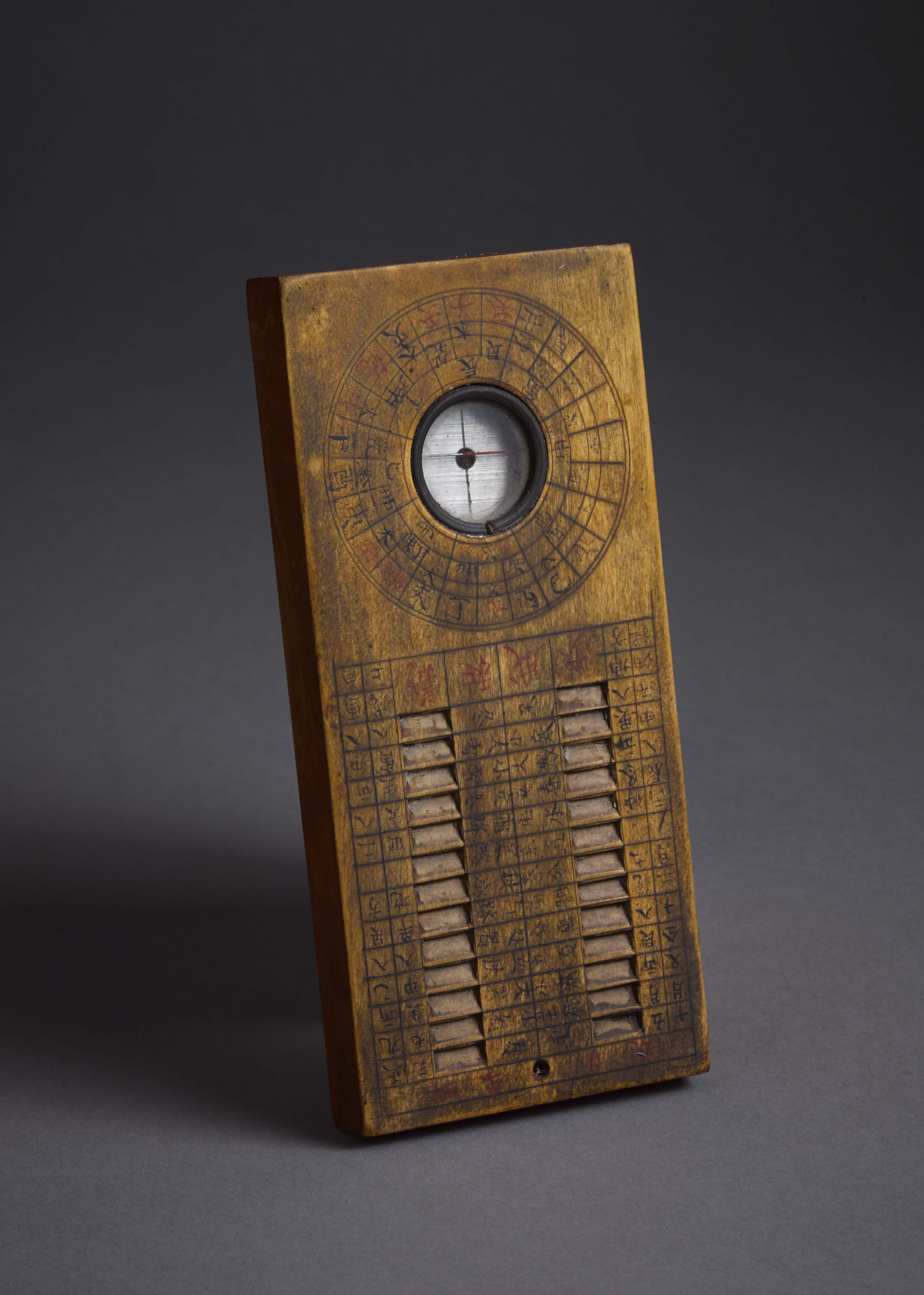 윤도의 기원은 기원전 278년에서 기원전 209년 사이에 만들어진 시판(式盤) 또는 천문판(天文盤)으로 거슬러 올라간다. 式|shì중국어 또는 式盤|shìpán중국어라고도 불리는 이 천문판은 옻칠된 양면 판으로, 천문학적 시선이 있었다. 대육임 점술과 함께, 이 판은 태일이 구궁을 통과하는 움직임을 기록하는 데 사용되었다. 표시는 "식(shì)"에서 최초의 자기 나침반까지 거의 변하지 않았다. 지구판, 천판 및 격자선은 최소한 전국 시대부터 사용된 "두 끈과 네 갈고리"(二繩四鉤|èrshéngsìgōu중국어) 기하학적 다이어그램의 일부이다. "지남침(指南針)", 즉 남쪽을 가리키는 바늘은 원래의 자석 나침반이며, 풍수를 위해 개발되었다.