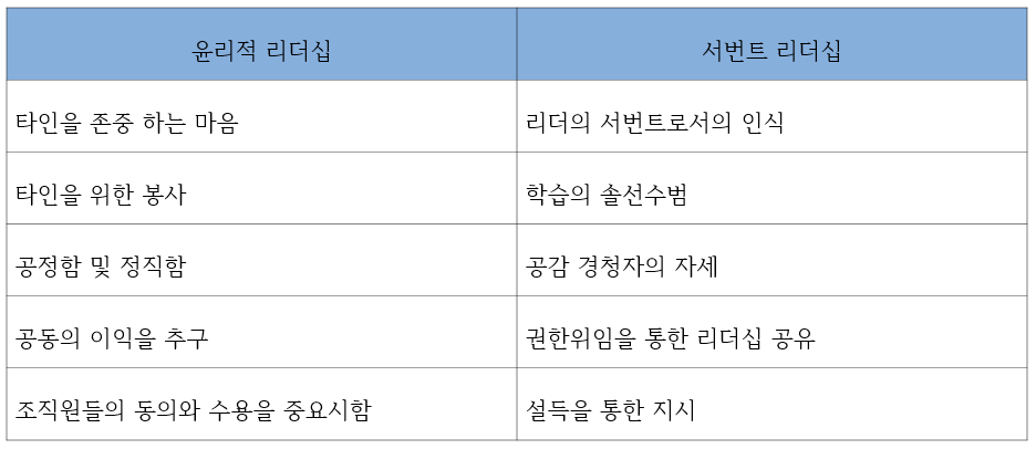 7. 윤리적 리더십과 서번트 리더십의 비교