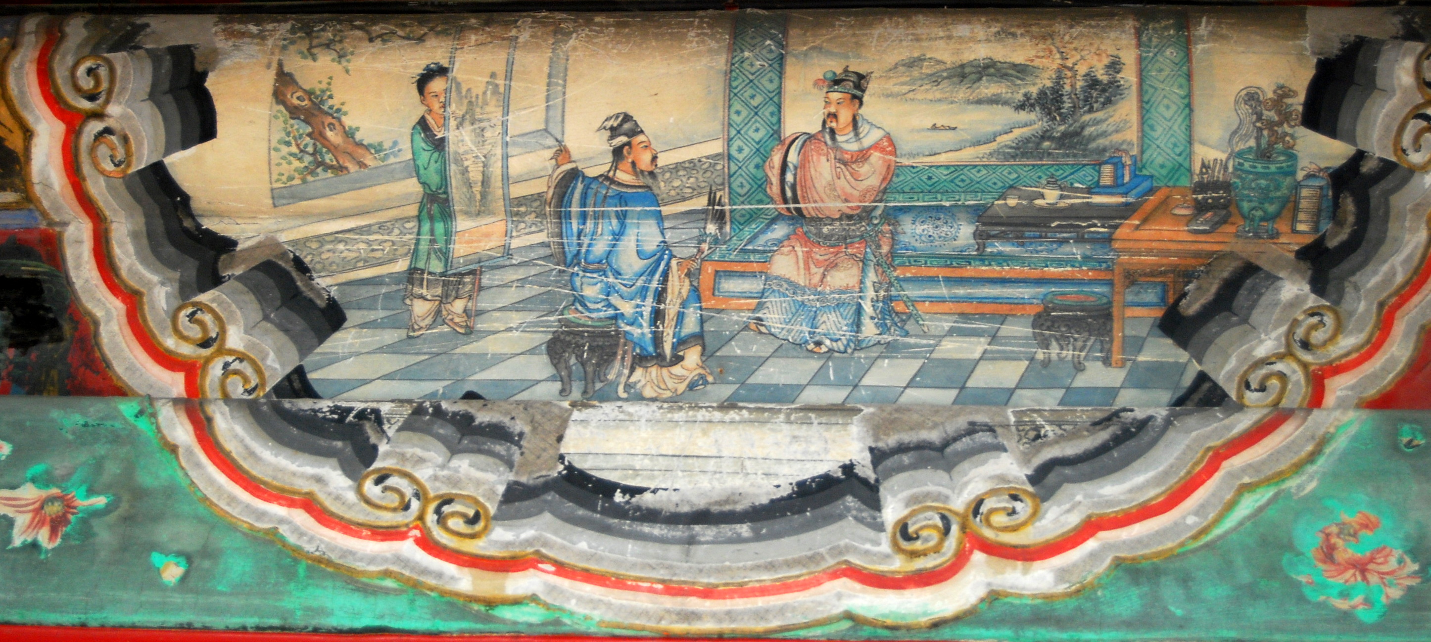 3세기 말 진수가 저술한 역사서 삼국지의 제갈량 전에 융중에서 그와 유비가 나눈 대화 내용이 기록되어 있다.[2] 유비는 한나라가 쇠퇴하고 간신들이 권력을 찬탈하여 황제가 유배되었다고 말하며, 자신이 정의를 바로 세우고자 하나 지혜롭지 못하여 실패했다고 토로했다. 그럼에도 불구하고 처음의 뜻을 굽히지 않았다고 말하며 제갈량에게 조언을 구했다.[2]