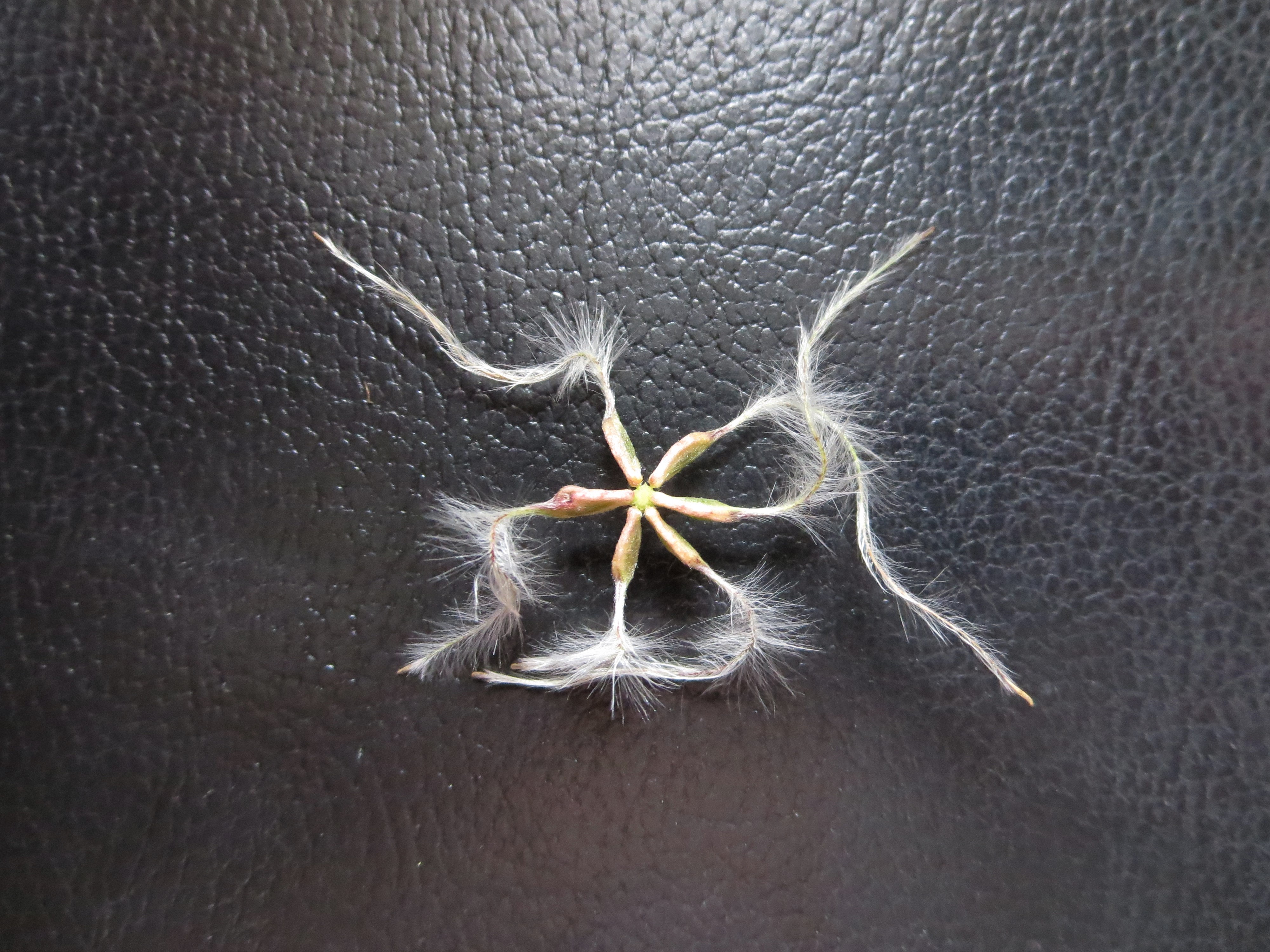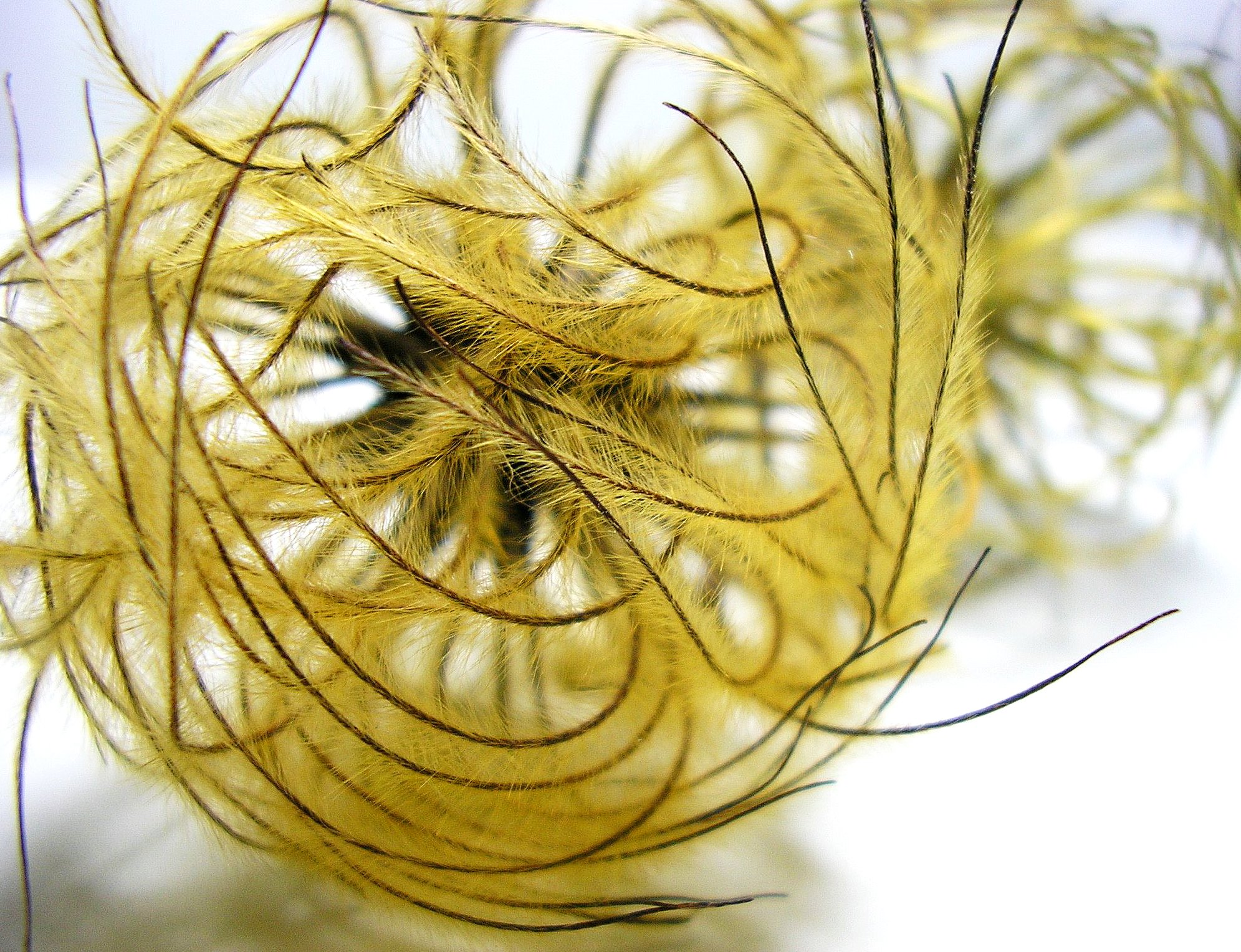 열매는 수과이며, 꽃이 진 후에도 꽃술대(꽃 기둥)는 떨어지지 않고 남아 다소 길어지며, 그 표면에 털이 많아 깃털 모양(우모상, 羽毛狀)이 된다.[71] 그래서 열매는 중심에 모이고, 거기에서 다수의 깃털 모양의 긴 돌기가 사방으로 뻗어 나오는 형태가 된다.