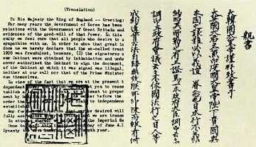 일본국 정부는 도쿄의 외무성을 통해 한국의 대외 관계 및 사무를 감리, 지휘하며, 일본국의 외교 대표자와 영사는 외국의 한국인 및 이익을 보호한다.[42]