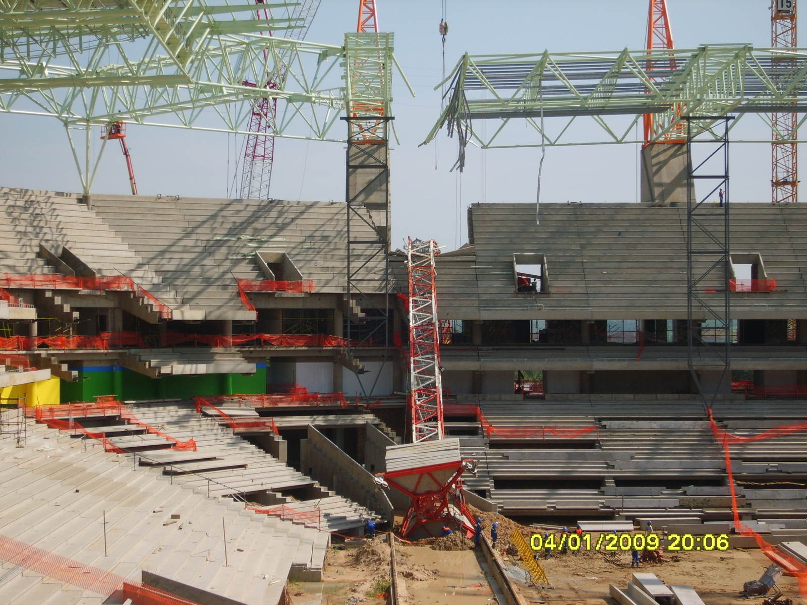 2009년 1월 갑작스러운 폭풍우 동안 타워 크레인이 쓰러져 부분적으로 완성된 지붕을 파괴했다. 당시 현장에는 아무도 없었고 부상자는 없었다.[5] 공사에는 총 550만 인시가 필요했다.