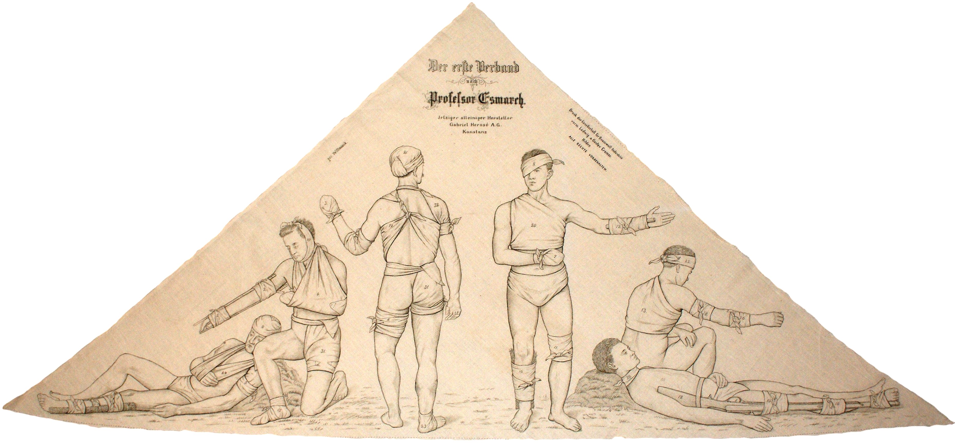 1870년 프로이센 군의관 프리드리히 폰 에스마르흐(Friedrich von Esmarch)는 군대에 공식적인 응급 처치를 도입하고 'erste hilfe'(응급 처치)라는 용어를 처음 사용했다. 그는 프랑스-프로이센 전쟁(Franco-Prussian War) 중 병사들에게 붕대 감기 및 부목 고정 기술을 교육하고, 에스마르흐 붕대(Esmarch bandage)를 사용하게 했다.[4] 이 붕대는 프로이센 전투원들에게 표준 지급되었고, 사용법을 보여주는 그림도 포함되었다.