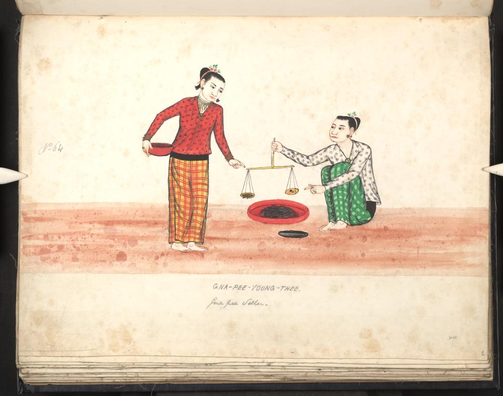 19세기 미얀마 수채화로 묘사된 ''응아삐'' 판매상