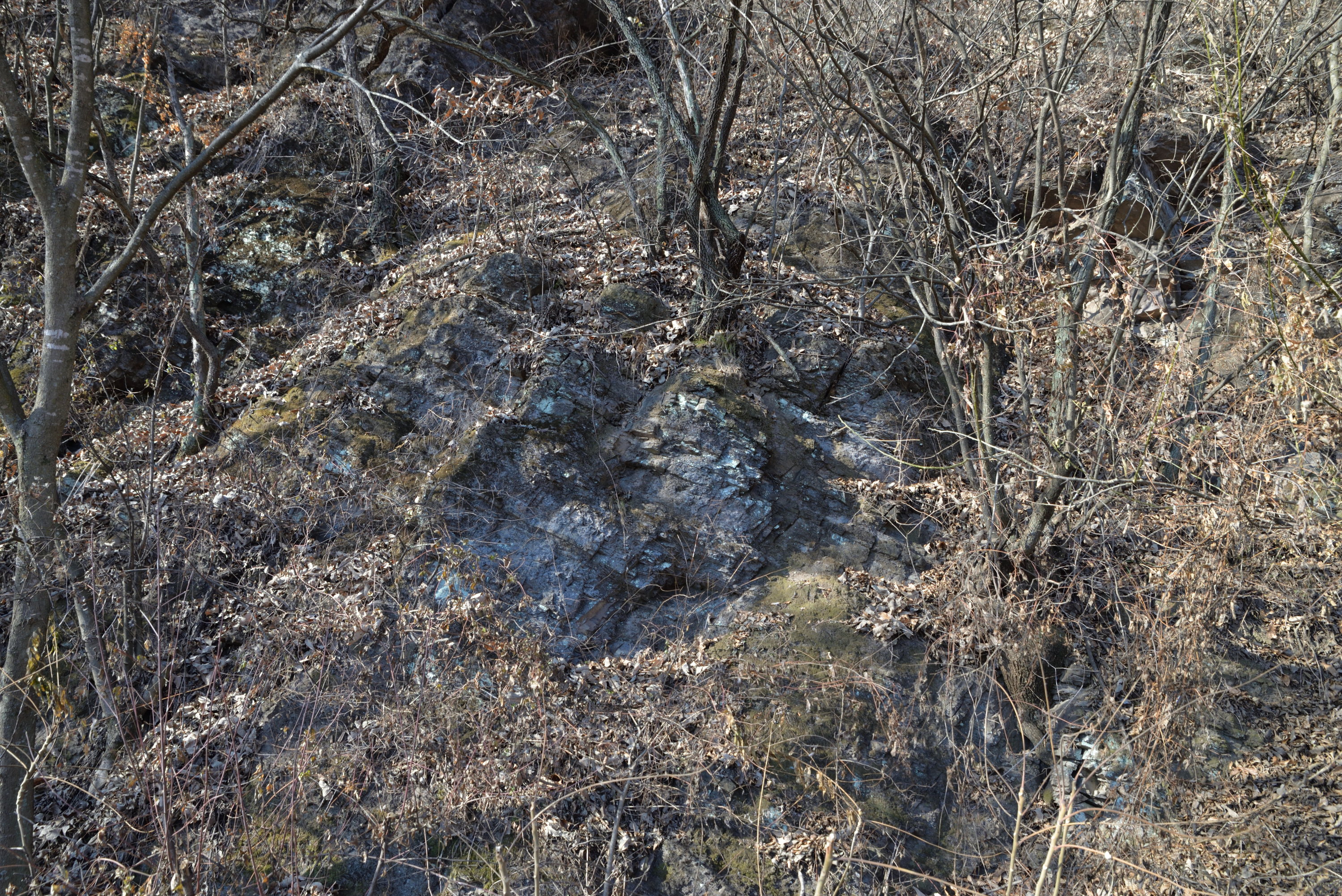 의성군 신평면 교안리~안평면 금곡리 간 지방도 제912호선/927호선 도로변에는 하산동층 문암산층원의 노두가 드러나 있다.