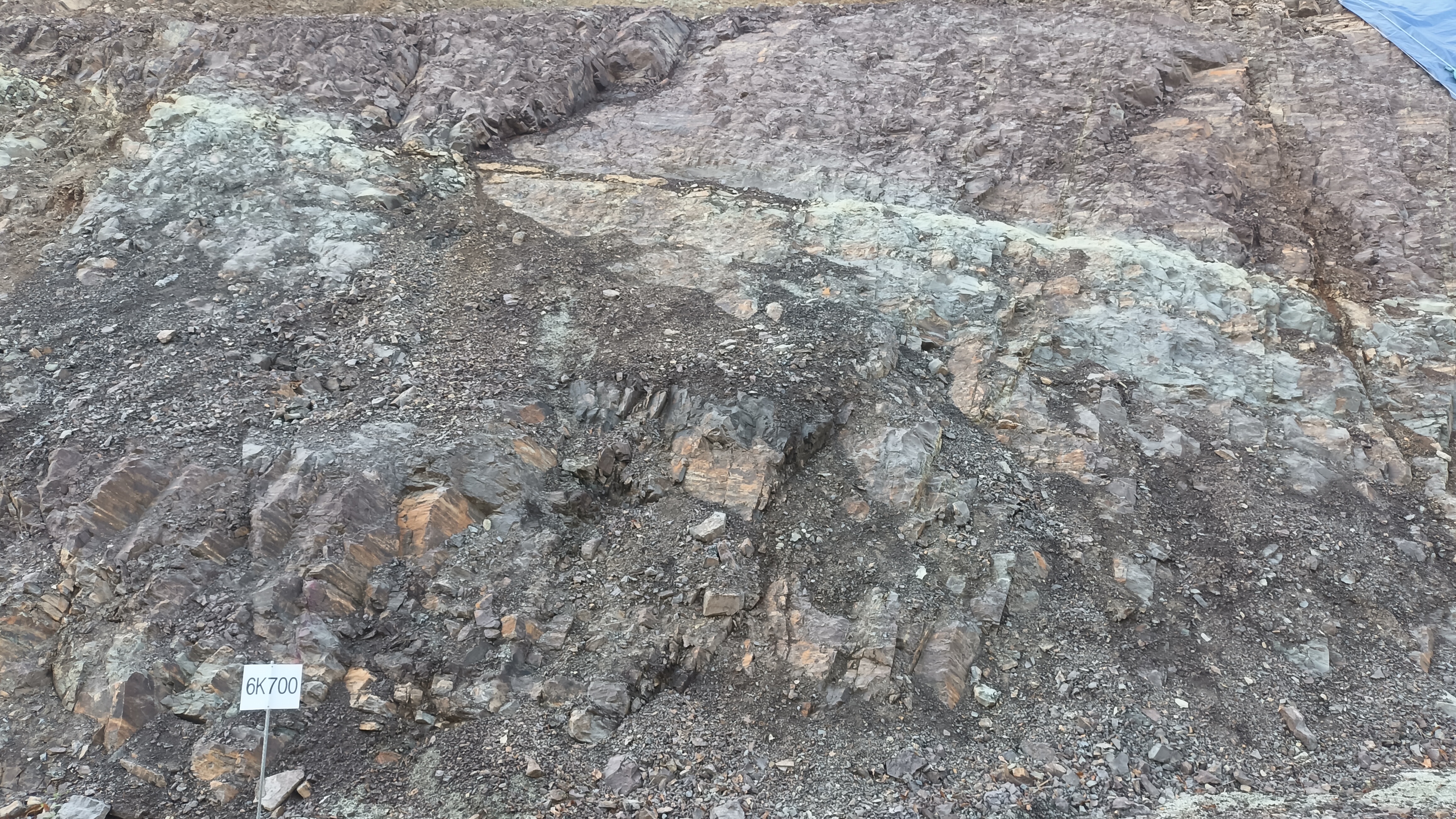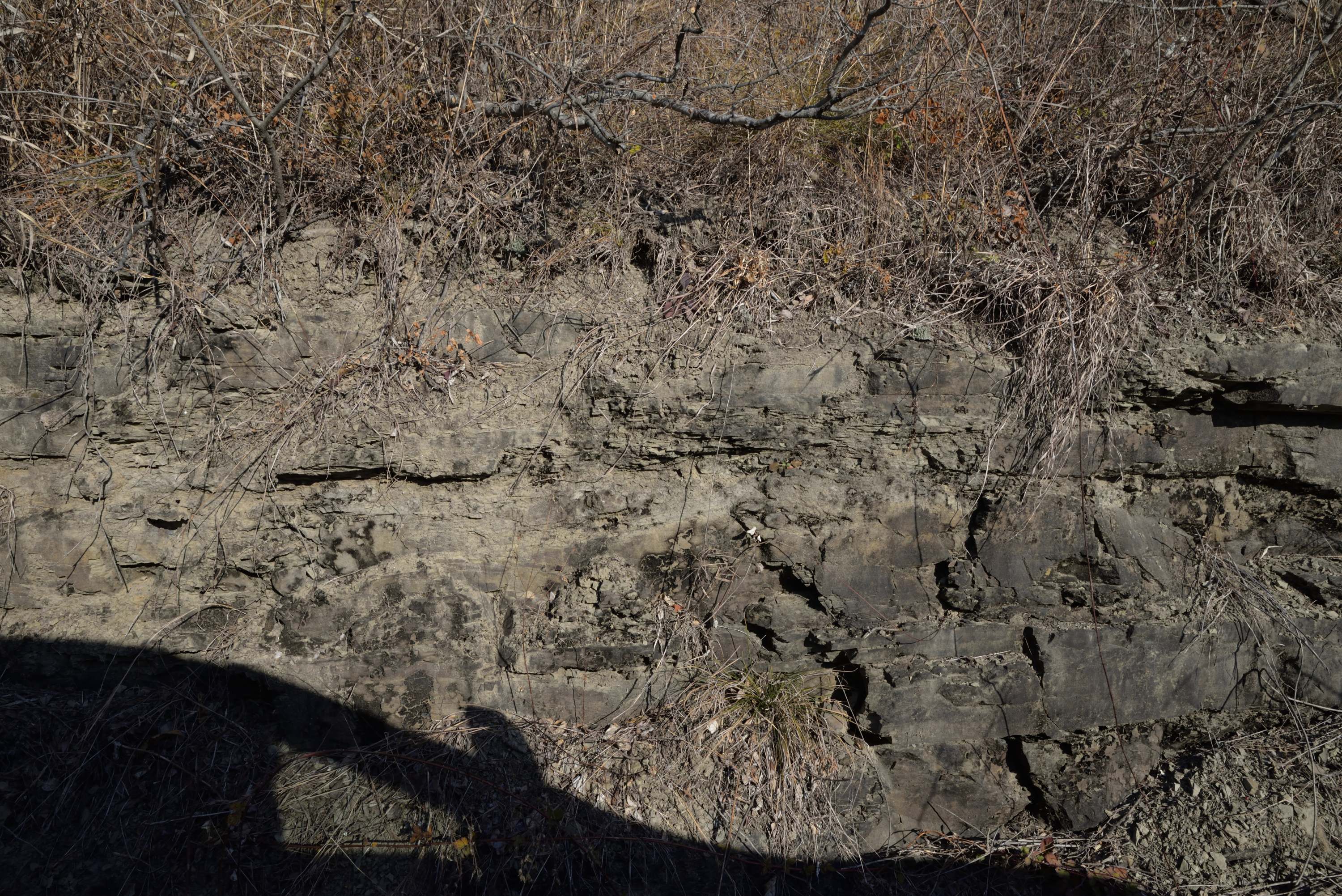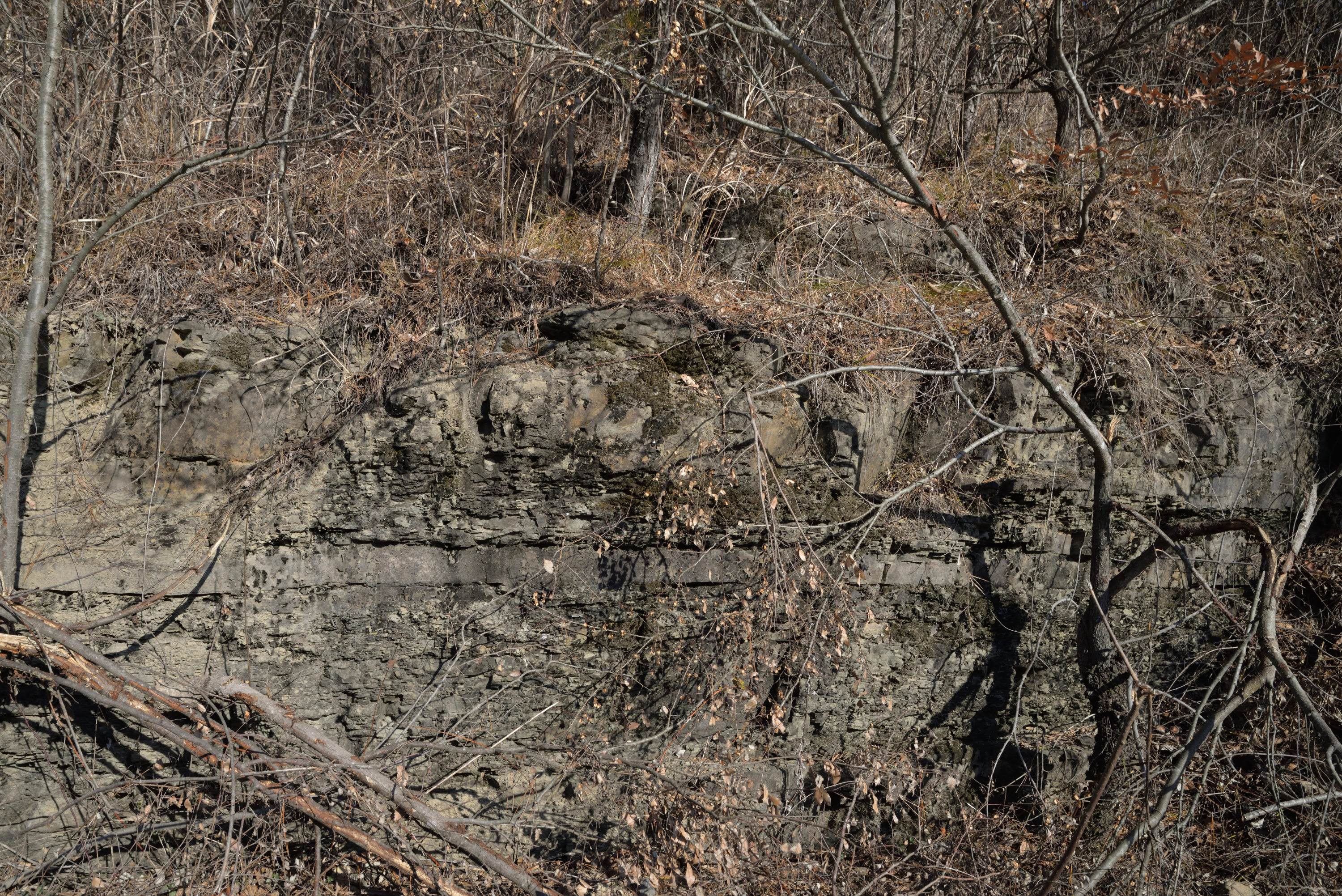 이 지역으로부터 북동쪽으로 1 km 떨어진 지역에서는 아래와 같은 순서로 층을 이룬다.[1]