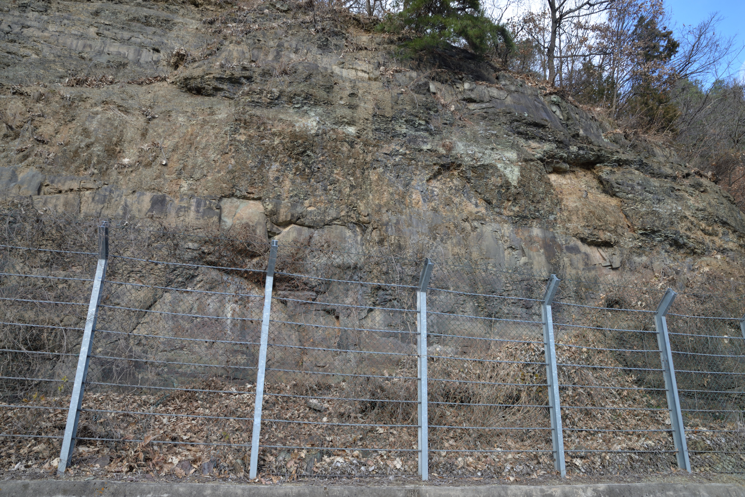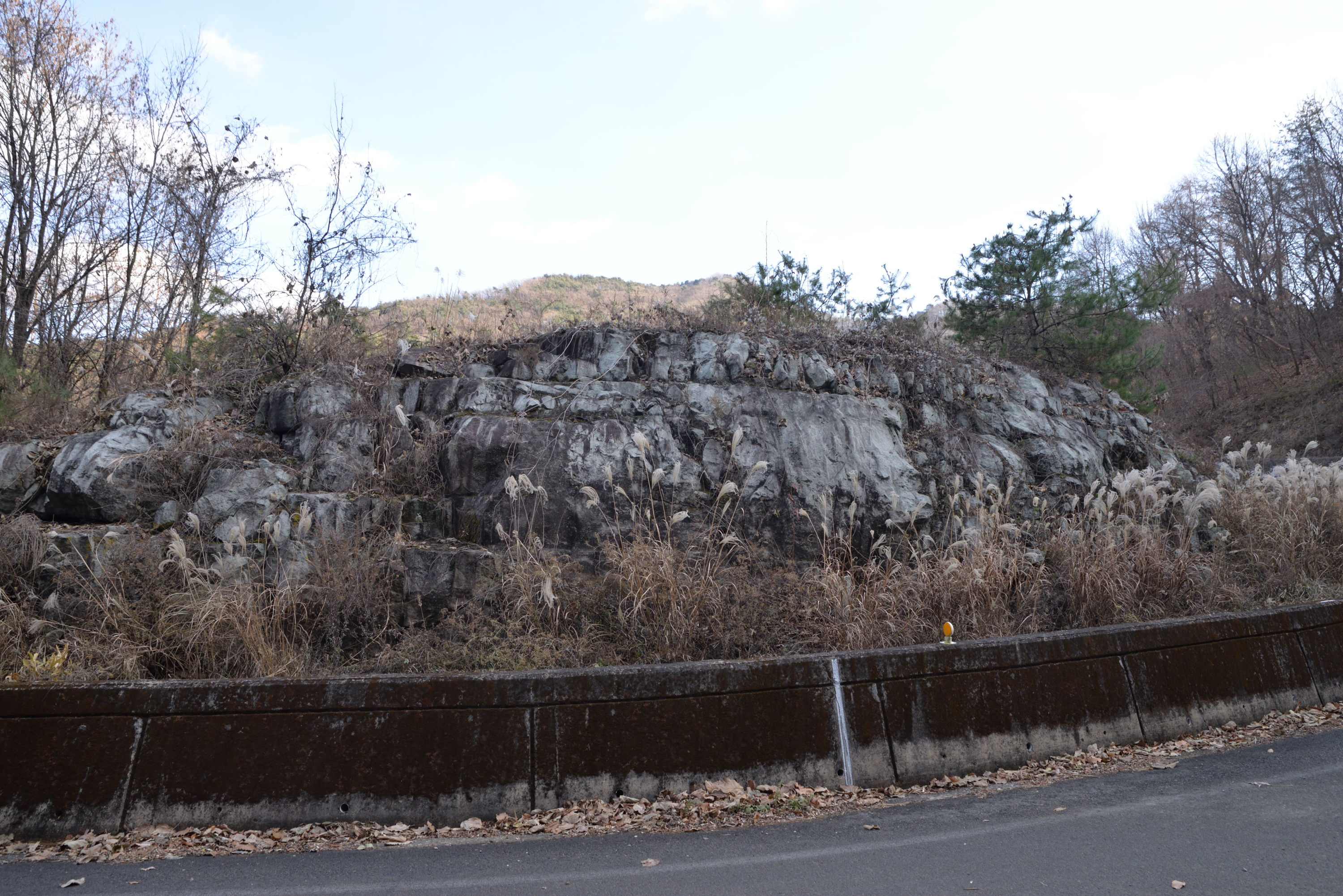 국도 제5호선 의성읍-단촌면 구간의 절개사면에는 아래 사진과 같이 후평동층의 노두(露頭)가 드러나 있다.