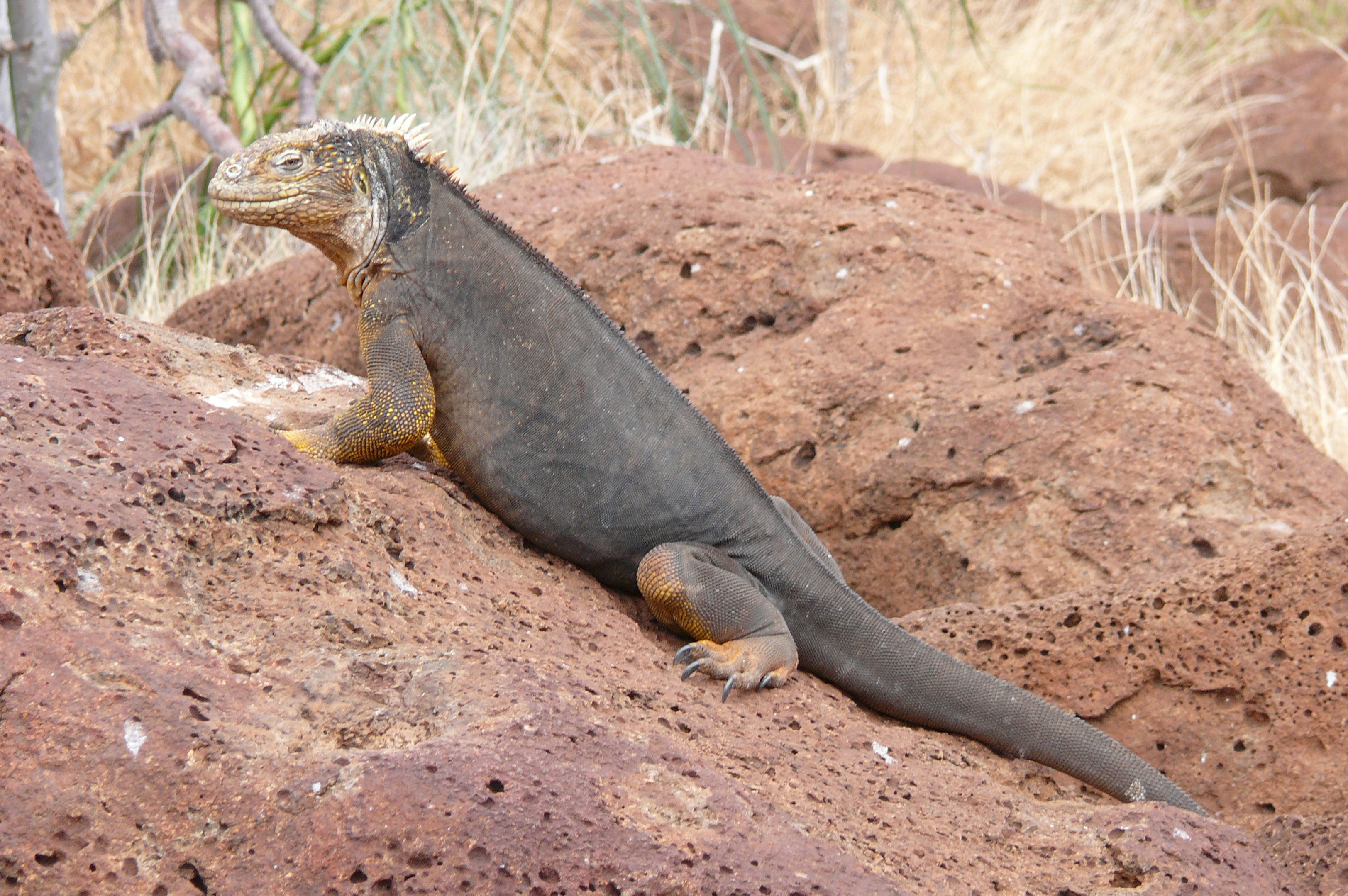 갈라파고스 제도에 서식하는 바다이구아나는 육지 이구아나와 가까운 종으로 해조류를 섭취하며 염분샘을 통해 염분을 배출하고 국립공원에서 보호받는 다양한 아종으로 나뉜다. - 이구아나과 - 푸른이구아나