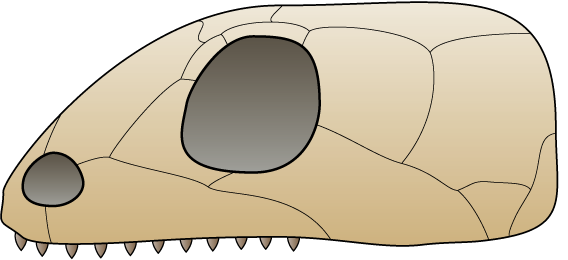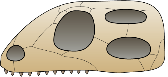 파충류의 조상형은 두개골에 측두창이 없고, 양서류와 마찬가지로 안와, 비공, 두정공만이 뚫려 있었다. 이러한 상태를 가진 파충류는 '''무궁류'''라고 불렸다. 초기의 파충류로 알려진 파레이아사우루스류 (협룡류) 등이 그 예이다. 이러한 상태에서는 하악 내전근이 두개골 내부에만 부착된다. 측두창이 하나만 있는 것을 단궁류라고 한다.