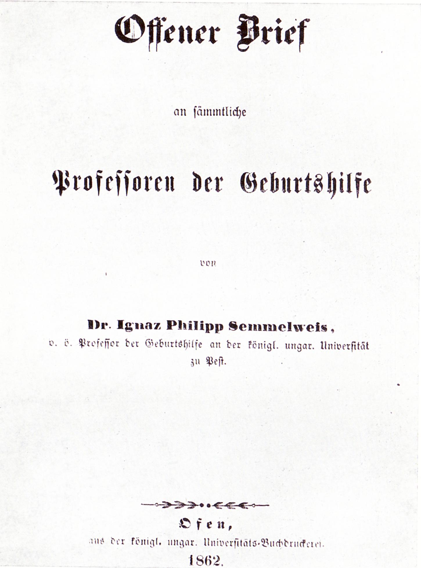 젬멜바이스의 1862년 ''산과학 교수 일동께 보내는 공개 서한''