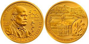 젬멜바이스를 묘사한 2008년 오스트리아 기념주화(유로(€) 50 금화)
