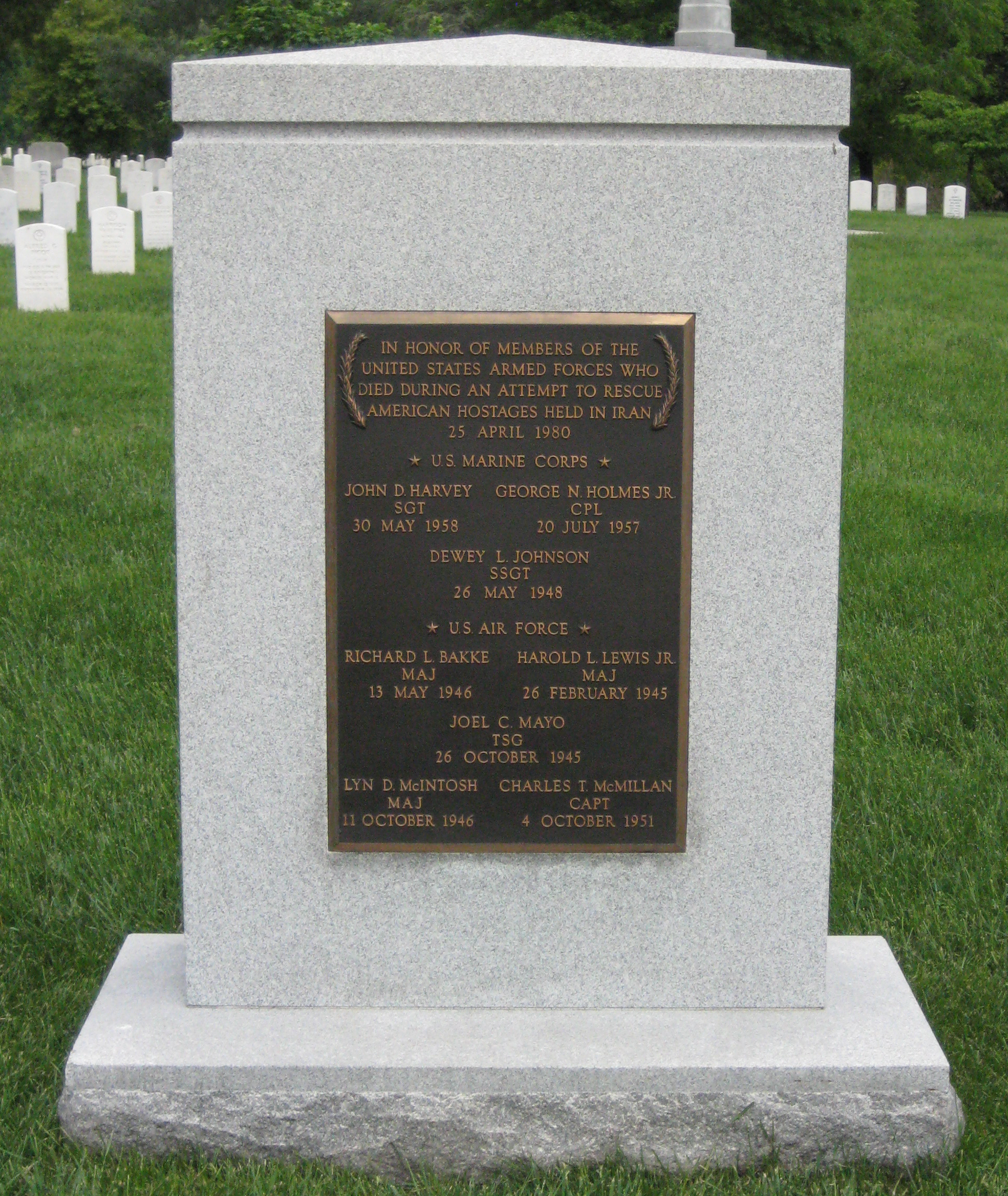 로버트 M. 본드 소장은 1980년 4월 25일 지미 카터 대통령의 추모 메시지를 플로리다주 나이스빌에서 추도식에서 낭독했다.[40][41] 알링턴 국립묘지에 기념비가 세워졌고, 카터는 5월 9일 가족들과 함께 추도식에 참석했다. 사망한 군인 3명(리처드 바케 소령, 해럴드 루이스 주니어 소령, 조엘 메이요 하사)은 알링턴 국립묘지에 공동 묘비로 표시된 무덤에 묻혔으며, 단체 기념비에서 약 25피트 떨어진 곳에 있다.[42]
