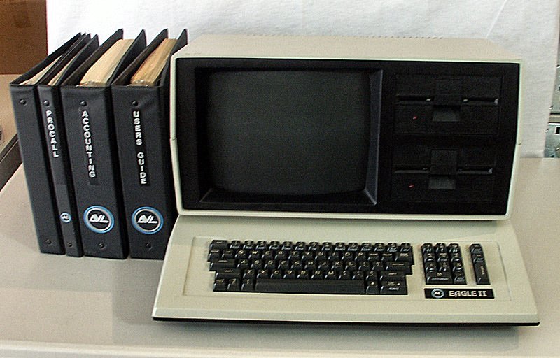 Eagle PC는 클론 IBM PC 제조업체 중 하나로, 1982년에 출시되었다. IBM PC의 640 × 200 해상도보다 향상된 752 × 352 그래픽을 제공했으며, 냉각 팬이 필요 없어 더 조용하게 작동했다.[6] 이후 Eagle Spirit 휴대용 컴퓨터가 출시되었는데, 무게는 15kg이었으며, IBM PC-XT와 완벽하게 호환되었다. 흑백 모니터, 1개 또는 2개의 5¼인치 디스크 드라이브(320k), 그리고 "1-디스크 모델"용 10MB 하드 디스크(슬림라인 기술 적용)를 갖추고 있었다.[6]