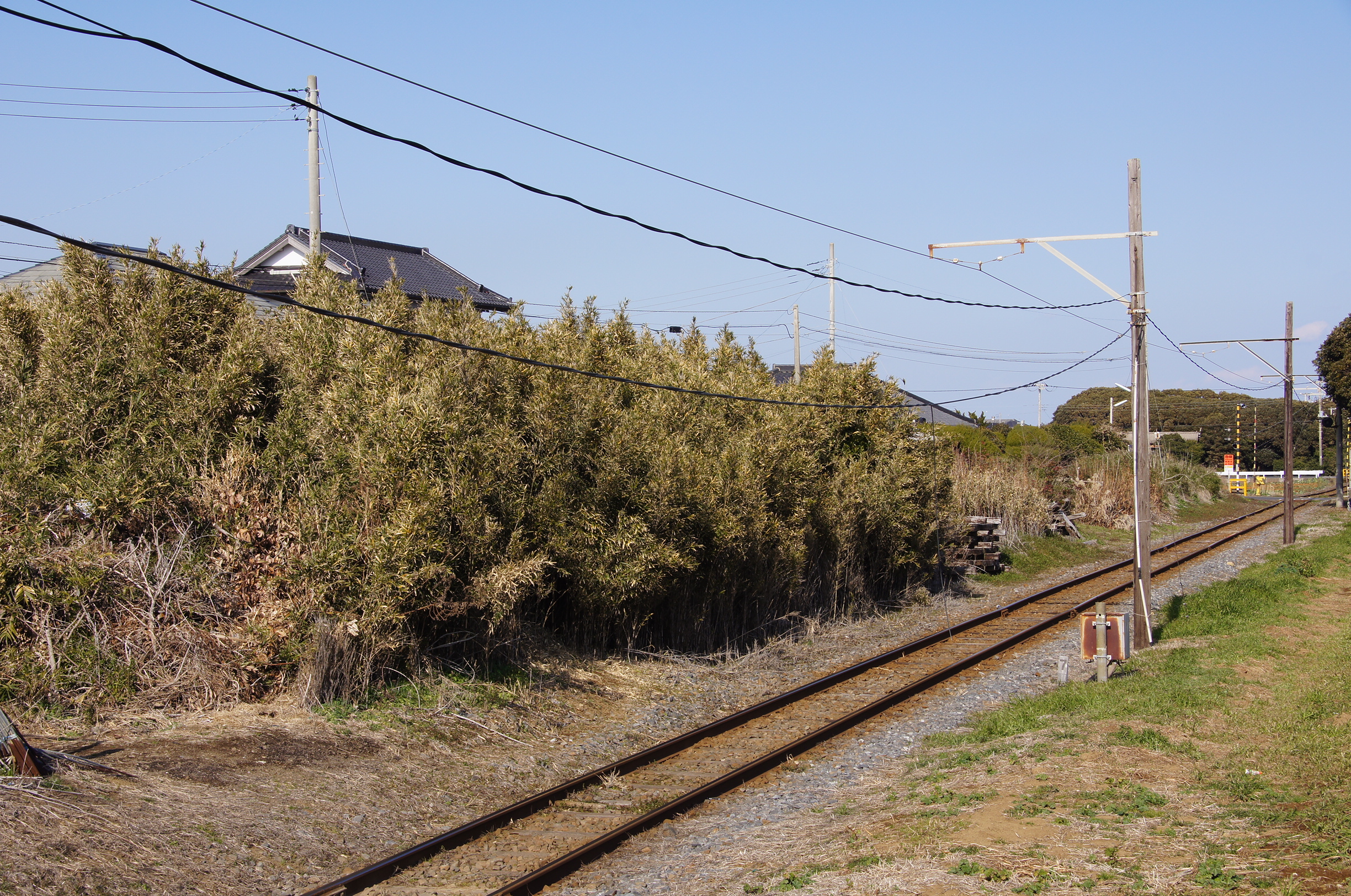 과거 역 앞에는 조시 전기 철도의 전동차 DeHa 501호와 사가미 철도 2000계 전동차 MoNi 2022호가 잘린 상태로 놓여 있었다. 이 차량들은 상점과 레스토랑 시설로 사용되었으나, 상태 악화로 2012년 7월 현장에서 해체되었다.[3][4]