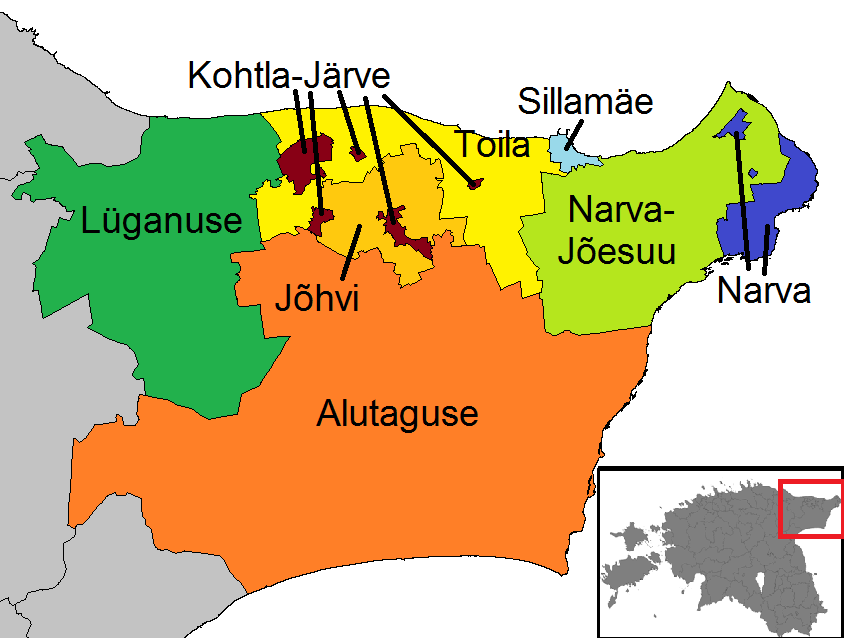 에스토니아인은 이 지역 서쪽에 위치한 알루타구세(69.47%), 토일라(64.27%), 류가누세(55.07%)와 같은 좀 더 시골 지역에서 우세하다.[6]