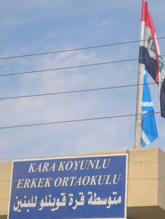 이라크 투르크멘 남자 중학교의 이중 언어 표지판(아랍어 및 터키어)