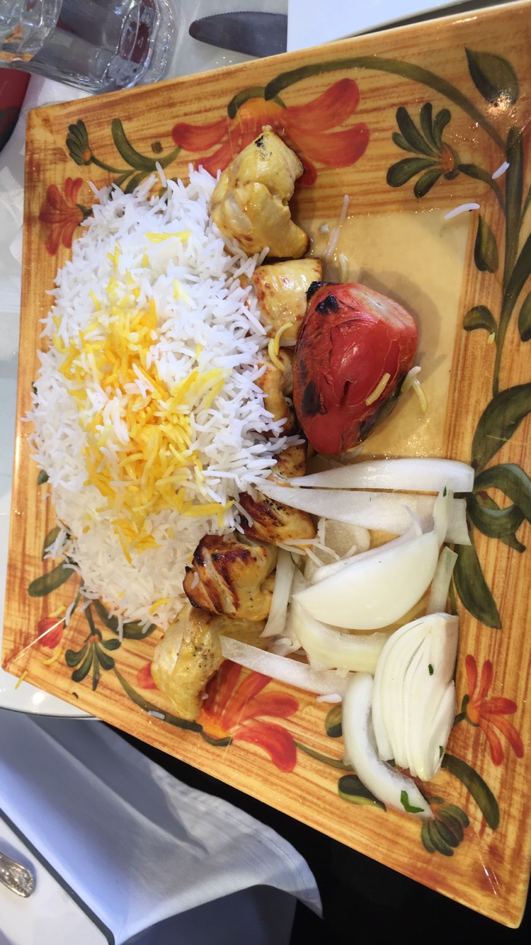 195px주제 케밥: 구운 닭고기 조각; 이란에서 가장 흔한 요리 중 하나이다.[28]