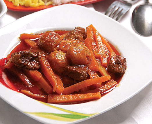 100px호레시-에 알루 에스페나지: 자두, 시금치, 고기를 넣고 끓인 요리.[34][35]
