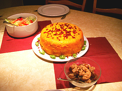 샐러드 올리비에 - 파티에서 자주 제공되는 감자 샐러드. 틀에 넣어 모양을 만들어 낸다.[134].