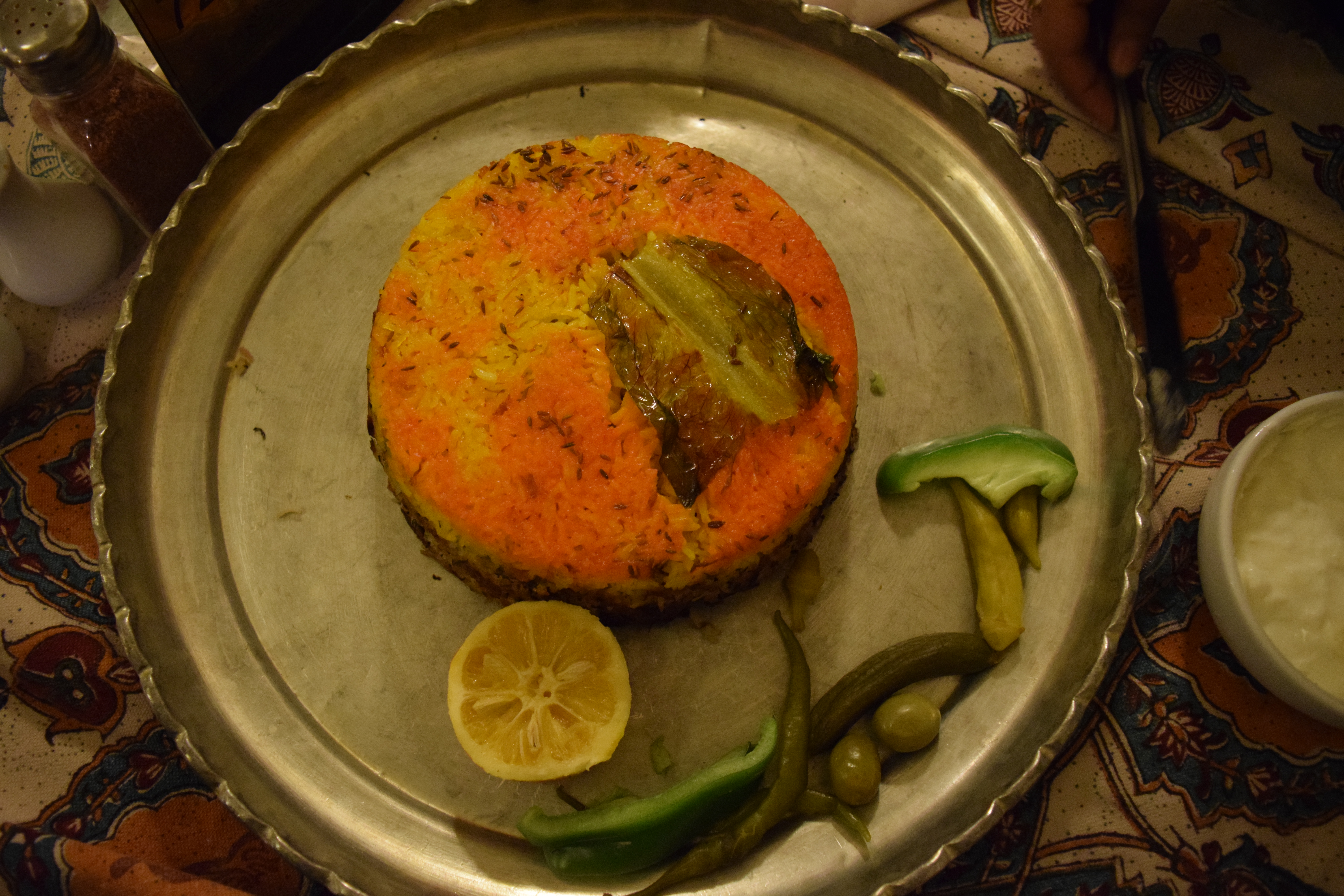 꼬치구이집(케밥집)에서는 신선한 양고기와 내장을 케밥(꼬치구이 양고기)으로 만들어 판매하며, 구운 고기와 허브를 난(نان)에 싸서 먹는다. 또한, 닭고기를 사용한 주제 케밥도 먹는다. 주제 케밥에 사용되는 닭고기는 라임즙에 강판에 간 양파와 마늘을 섞은 마리네이드에 절인 후 꼬치구이로 만든다.