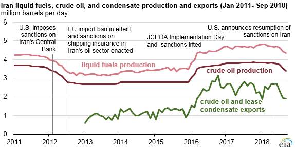 이란 석유 장관 비잔 남다르 장가네는 2018년 9월, 유가 상승을 막고 싶다면 도널드 트럼프 미국 대통령이 중동 간섭을 중단하고 이란의 석유 생산 및 수출을 방해하지 말아야 한다고 경고하기도 했다.[151] 2021년에는 자바드 오지 석유 장관이 제재가 해제된다면 이란이 2021년 세계 에너지 위기에 대처할 능력이 있다고 주장했다.[152] 에너지 분석가들은 이란에 대한 경제 제재로 인해 2023년까지 석유 시장이 타이트할 것으로 예상했으며, 유럽 국가들은 인플레이션 압력 완화를 위해 이란과 베네수엘라의 글로벌 석유 시장 복귀를 원한다는 분석도 나왔다.[153]