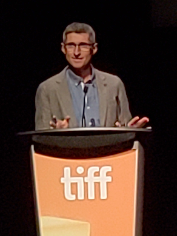 프로듀서 파브리스 아르노가 2018년 토론토 국제 영화제에서 ''이미지 북''을 소개하고 있다.