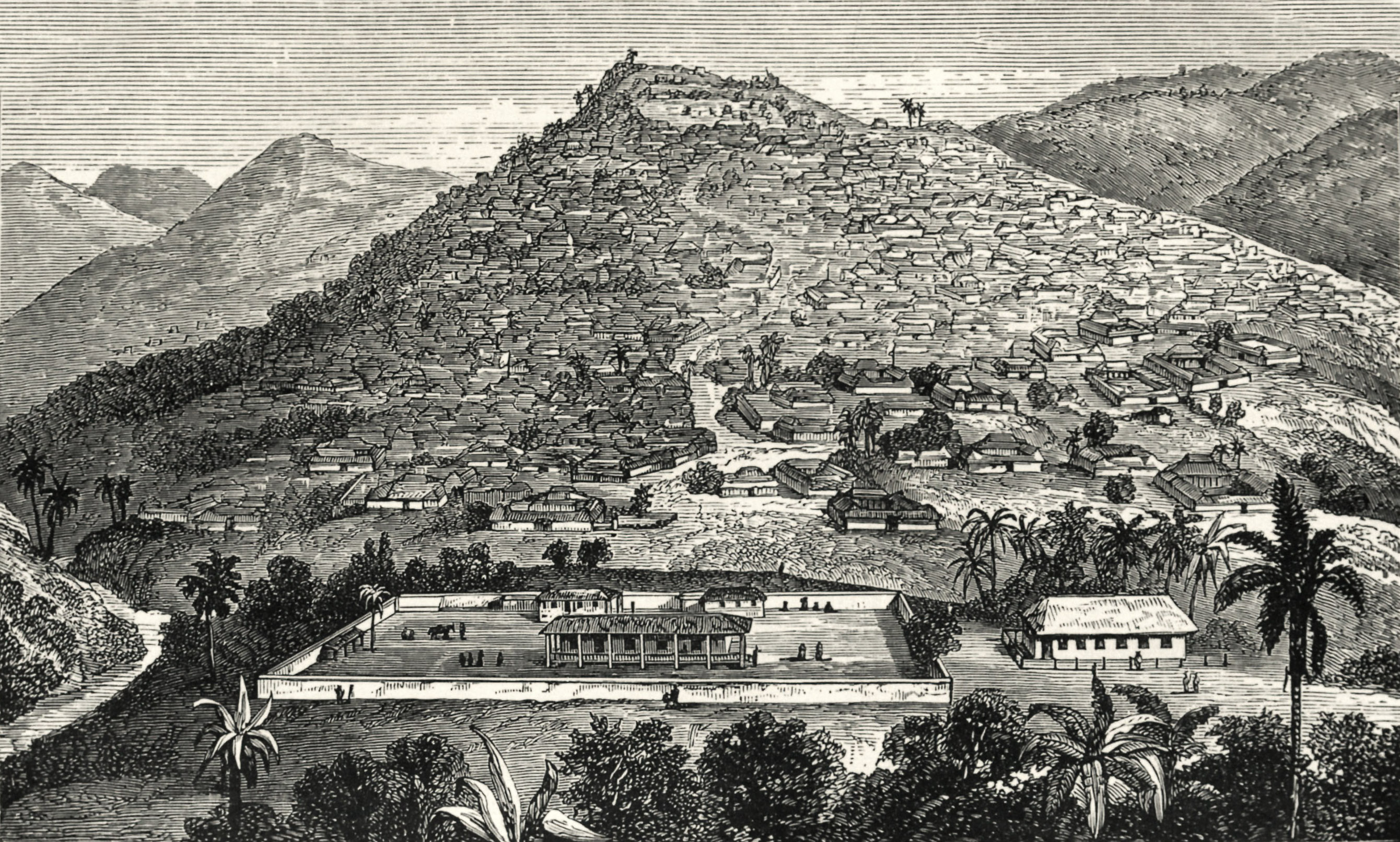 이바단은 '초원 가장자리'를 뜻하는 "Eba-Odan"에서 유래되었으며,[7] 1829년에 생겨났다.[8] 이 시기에는 옛 요루바 도시들이 사라지고, 아베오쿠타, 새로운 오요(오요 아티바) 및 이바단과 같은 새로운 도시들이 등장했다.[19] 현지 역사가들에 따르면, 라게루가 도시를 세웠으며, 처음에는 오요, 이페, 이제부 왕국 출신 전사들을 위한 전쟁 캠프였다.[9] 160~275미터 높이의 여러 언덕이 있는 숲 지대는 전략적인 방어 기회를 제공했다. 또한, 도시가 숲 가장자리에 위치하여 숲과 초원 지역 모두에서 온 상인과 상품의 마케팅 중심지로 성장하는 데 기여했다.2. 2. 19세기