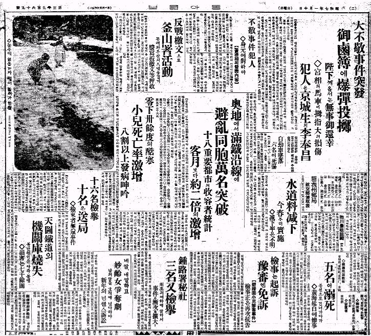대불경 사건 돌발, 어로부에 폭탄투척 폐하께옵서는 무사어환행, 범인은 경성 생(生) 이봉창.
