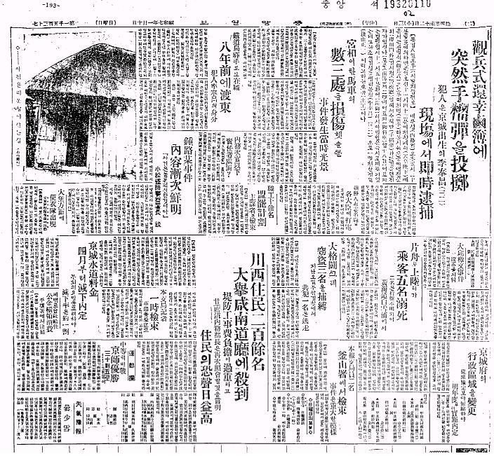 천황폐하 환행도중 돌연 폭탄을투척/범인은 조선 경성 생(生) 이봉창