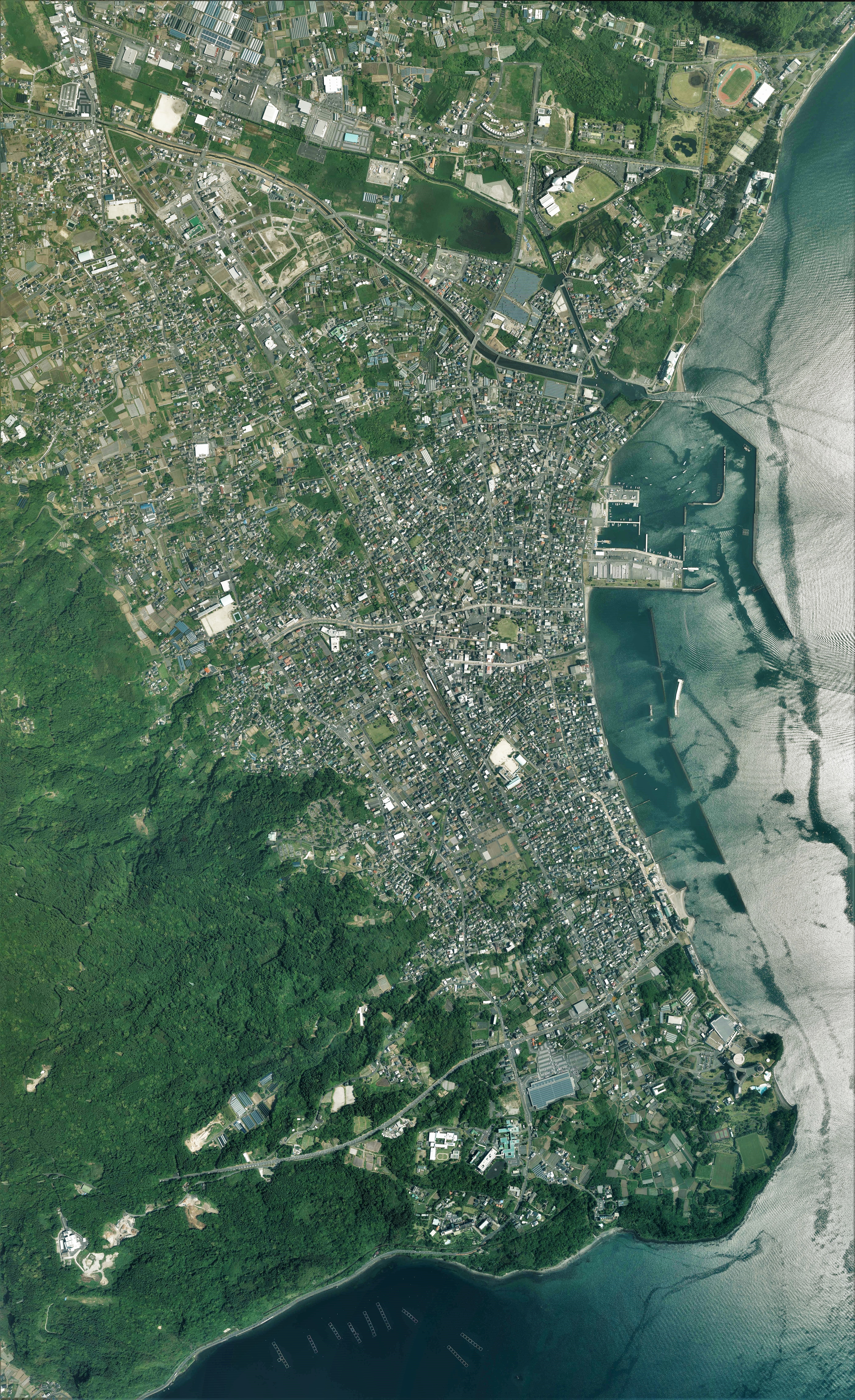 주로 해안선을 따라 시가지가 형성되어 있지만, 카이몬다케 주변 지역에서는 카이몬다케보다 내륙 쪽에 시가지가 있다.[4]