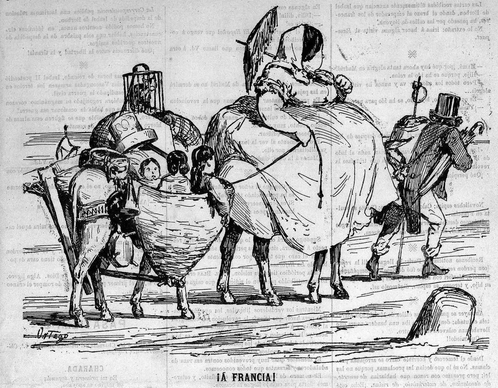 1868년 9월, 카디스에서 ''프론누시아미엔토''가 발생하여 1868년 영광스러운 혁명의 시작을 알렸다. 알콜레아 전투에서 이사벨 2세 세력이 패배하면서 35년간의 통치가 막을 내렸다. 이사벨 2세는 프랑스로 망명했다.