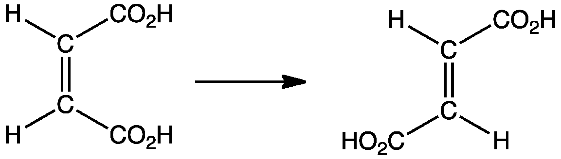 두 탄소 원자 사이의 이중 결합은 나머지 네 개의 결합이 동일한 평면에 놓이도록 하며, 이는 π 오비탈에 의해 정의된 결합 평면에 수직이다. 각 탄소의 두 결합이 서로 다른 원자와 연결되어 있으면, 이중 결합을 중심으로 한 탄소의 180도 회전에 의해 서로 다른 두 가지 형태가 가능하다.
