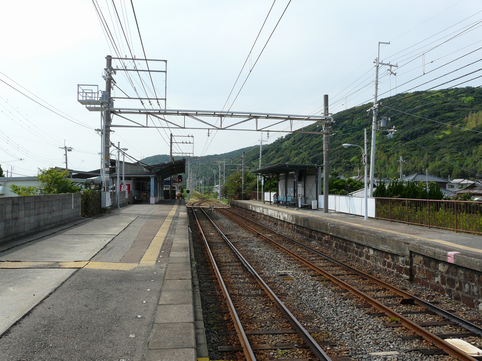 상대식 승강장 2면 2선의 지상역이다. 역사는 가다 방면 승강장 가다 쪽에 있으며, 와카야마시 방면 승강장으로 가려면 구내 건널목을 건너야 한다. 화장실은 가다 행 승강장 구내 건널목 앞에 있다.[10]