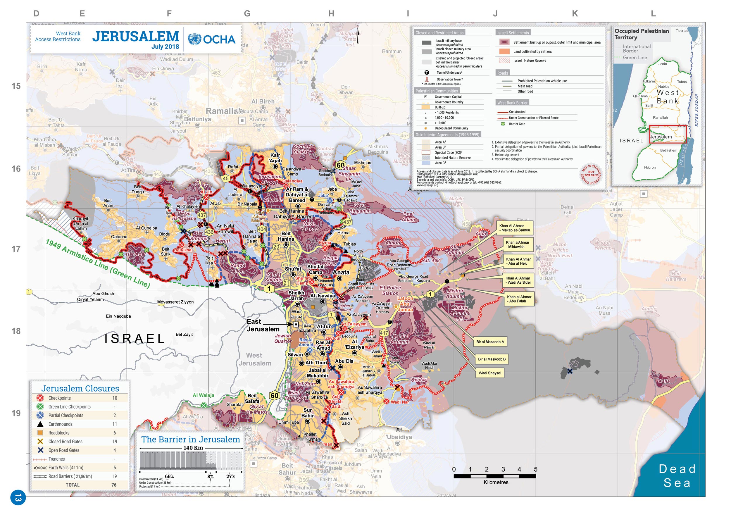 2004년 7월, 국제 사법 재판소는 [https://web.archive.org/web/20180908090214/http://www.icj-cij.org/docket/index.php?p1=3&p2=4&k=5a&PHPSESSID=1e92d1f61e92ee74a585b3d836385610&case=131&code=mwp&p3=4 '팔레스타인 점령 지역 내 장벽 건설의 법적 결과']에 대한 자문 의견을 발표하여, 1967년 이스라엘군에 의해 영토가 점령되었으며 이후의 사건들은 상황을 변경하는 데 아무런 영향을 미치지 않았다고 판결했다.