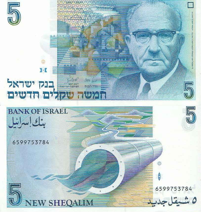1985년 9월 4일, 5₪, 10₪, 50₪ 지폐가 도입되었다.[22] 1986년 5월 8일에는 1₪ 지폐가,[22] 1986년 8월 19일에는 100₪ 지폐가 발행되었다.[22] 1988년 4월 2일에는 20₪ 지폐가,[22] 1992년 2월 16일에는 200₪ 지폐가 발행되었다.[22]