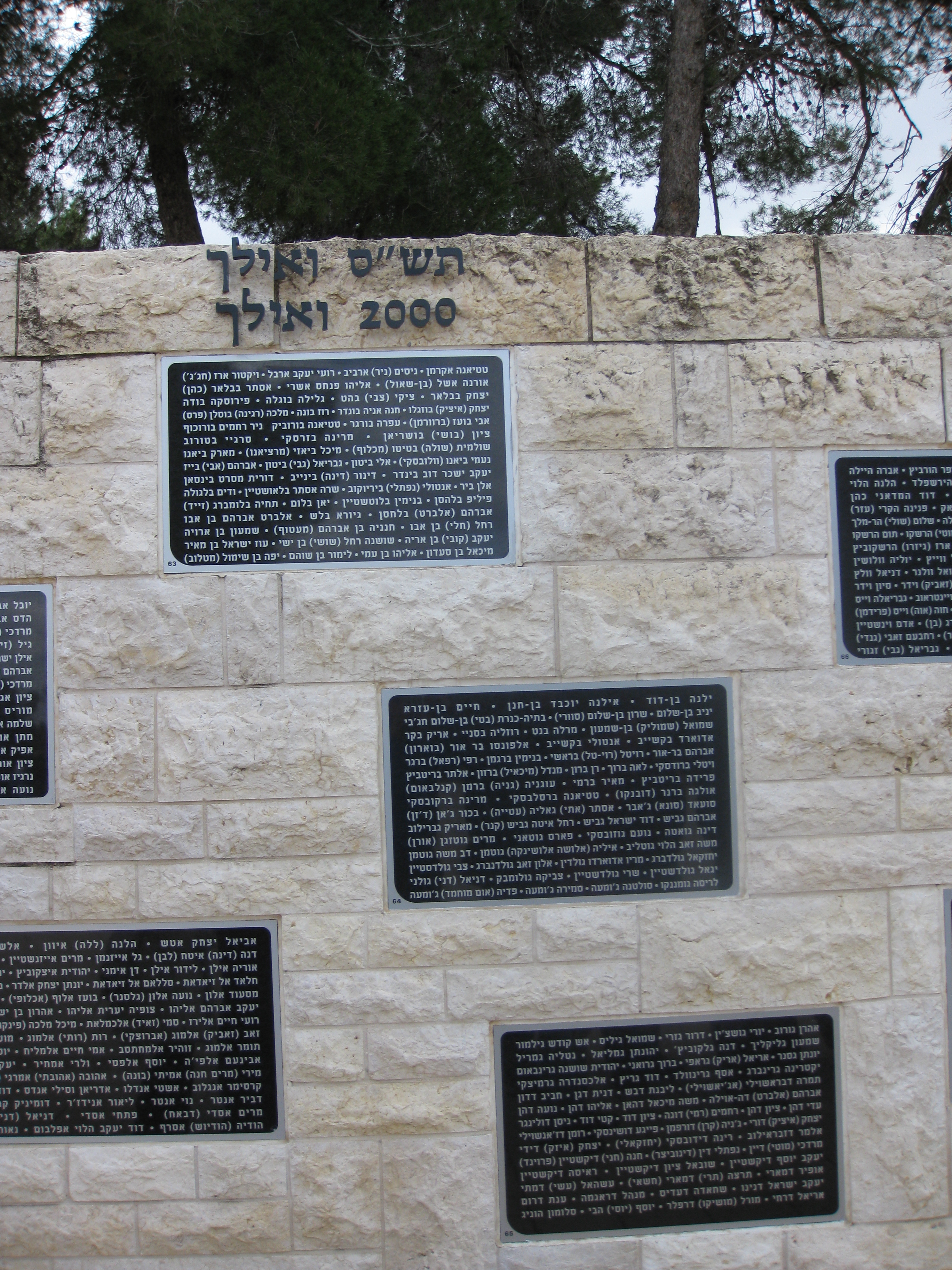 메론 벤베니스티 이스라엘 정치학자에 따르면, 이 기념비는 "테러 희생자"의 정확한 목록이라기보다는 집단 기억을 재구성하려는 시도에 가깝다. 예를 들어, 이름이 올라간 희생자 중 한 명은 1851년, 그가 오스만 제국 통치자들에게 구시가지에 거주하는 아랍인들을 후르바 회당 건설에 앞서 이주시킬 것을 청원한 후 아랍인들에게 살해당했다. 또 다른 희생자들은 유대계 무장 단체인 이르군이 저지른 1946년 킹 데이비드 호텔 폭탄 테러의 유대인 희생자들이었다. "적대 행위"의 희생자로 포함되는지 여부는 이스라엘의 사회 보장 기관인 국립 보험 연구소(Bituah Leumi)가 결정한다.