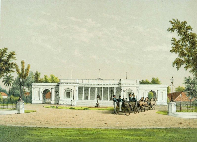 과거 바타비아 (자카르타)는 해안 근처에 위치해 있었고, 네덜란드령 동인도 총독 관저도 그곳에 있었다. 하지만 1804년, 관저를 5km 내륙으로 이전하는 계획이 세워져 완공되었다. 이 관저는 규모가 작아 점차 비좁아졌기 때문에, 1879년에 규모를 확대한 새로운 관저가 남쪽에 건설되었다.