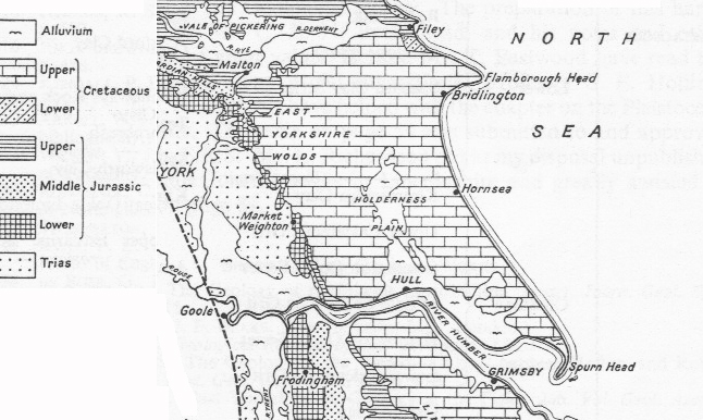 마지막 빙하기 이전에는 이 지역의 동쪽 해안선이 요크셔 월즈의 동쪽 기슭을 따라 있었으며, 이곳에서 해변의 잔해가 발견되었다. 북해 빙상은 후퇴하면서 엄청난 양의 역암을 퇴적시켰고, 이로 인해 습하고 늪지대 지역이 형성되어 홀더니스 평야가 되었다.[24] 요크 계곡의 또 다른 빙상은 동시에 후퇴하면서 월즈 서쪽에 두꺼운 빙하 퇴적물과 두 개의 두드러진 퇴적구를 남겼다. 이 요크 계곡 퇴적물은 또한 습지를 형성했다. 월즈 자체는 대부분 얼음이 없는 배수가 잘 되는 석회암 고지대였다.[25] 점차 얼음이 후퇴하면서 존재했던 툰드라 환경은 방목 동물들을 지원할 수 있는 식생으로 바뀌었다. 많은 양의 물이 여전히 북부 빙상에 갇혀 있었기 때문에 해수면은 현재보다 훨씬 낮았고, 땅의 면적은 동쪽으로 저지대 국가까지 뻗어 있었다.[26]