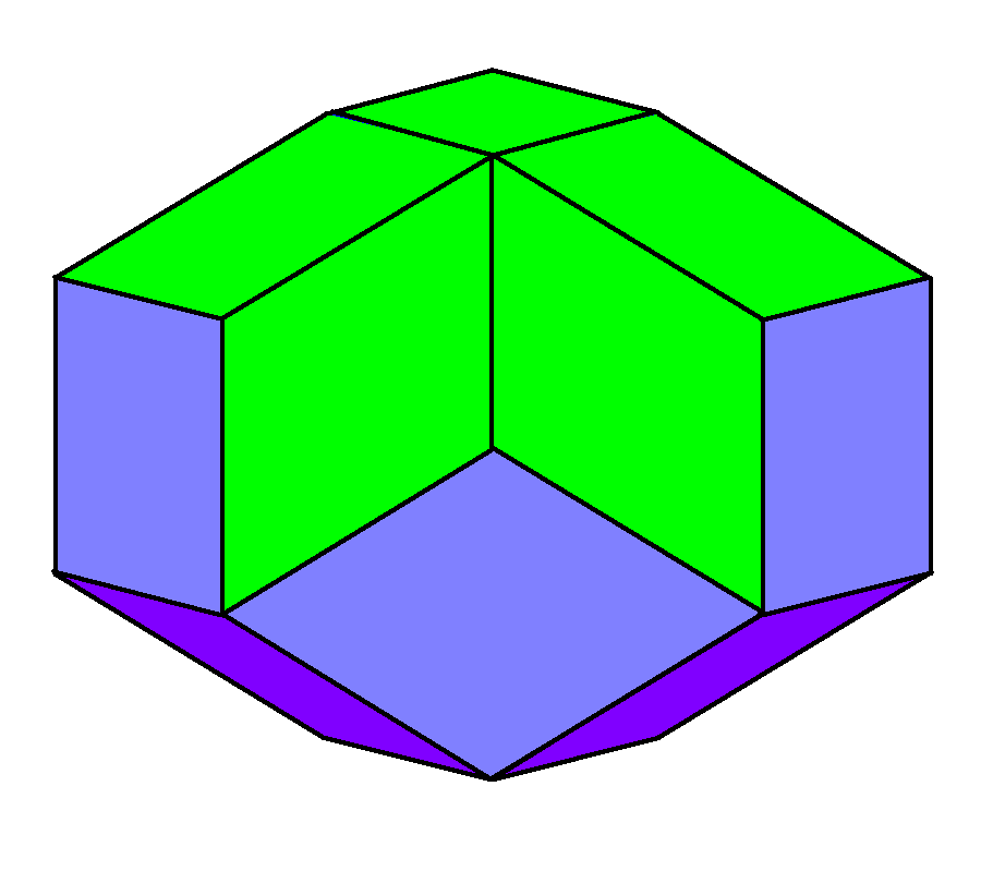 이것은 큐브와 가위 합동인데, 이는 큐브를 작은 다면체 조각으로 잘라 재배열하여 큐브를 만들 수 있다는 것을 의미한다.