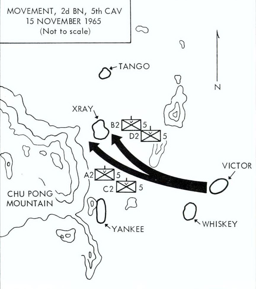11월 13일, 제3여단 사령관 토마스 W. 브라운 대령은 라슨 장군과 놀스 장군의 명령에 따라 할 무어 중령과 제7기병 연대 제1대대장과 만나 "다음날 아침 공중 강습"을 수행하고 11월 15일까지 수색 및 파괴 작전을 수행하라고 말했다.[14]