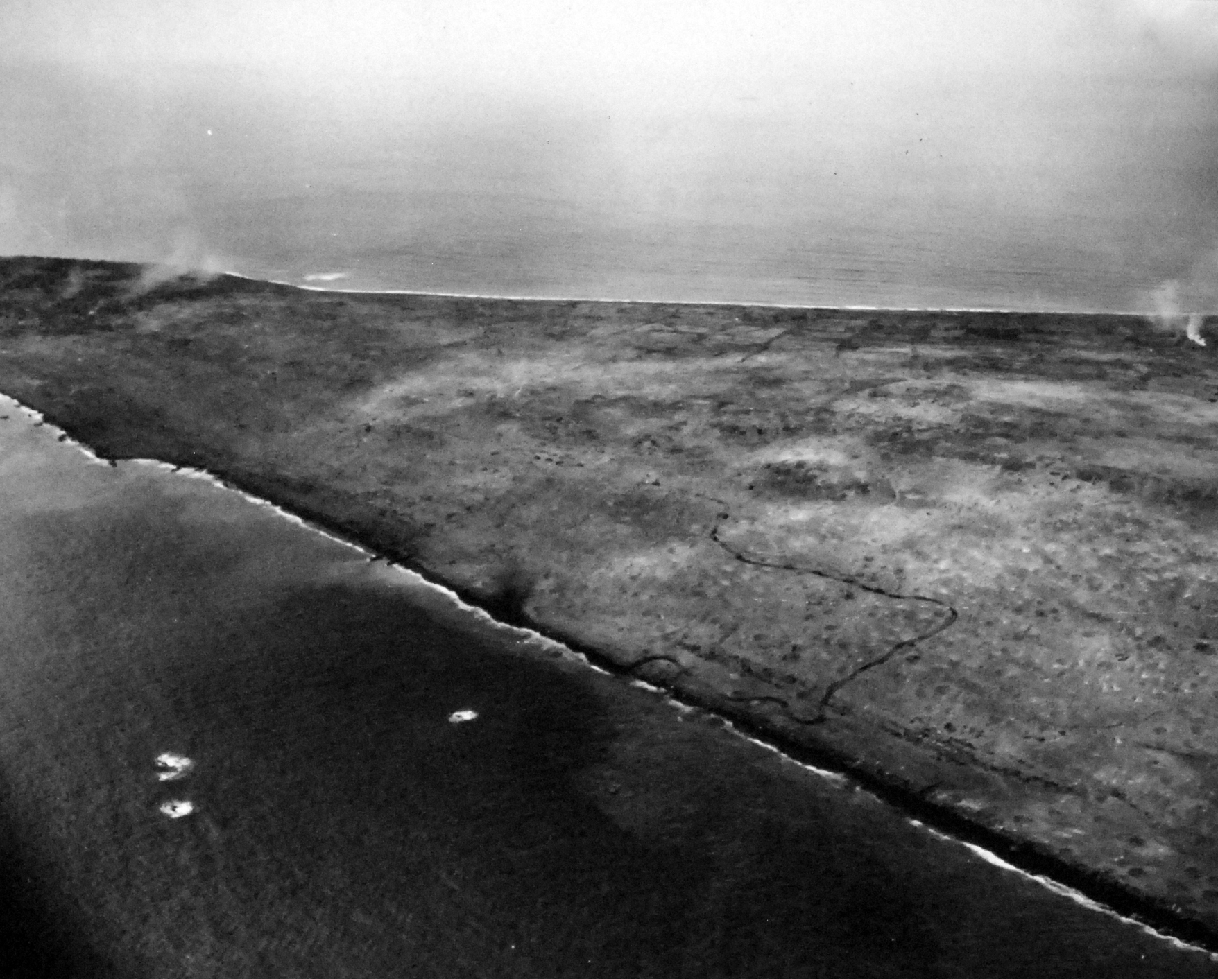 동해안에는 불리한 역파도 가능성이 있었기 때문에, 서해안에 상륙하는 대체 계획도 세웠지만, 북북서 계절풍에 의한 너울의 위험성도 있어 실행될 가능성은 낮았다. 동해안은 수리바치산에서 북동쪽으로 약 3km 뻗어 있는 해안이 있었고, 미군은 이를 500yd (457.2m)마다 7개 구역으로 나누어 왼쪽에서 오른쪽(남서쪽에서 북동쪽)으로 그린 구역, 레드 1구역, 레드 2구역, 옐로우 1구역, 옐로우 2구역, 블루 1구역, 블루 2구역으로 명명했다.
