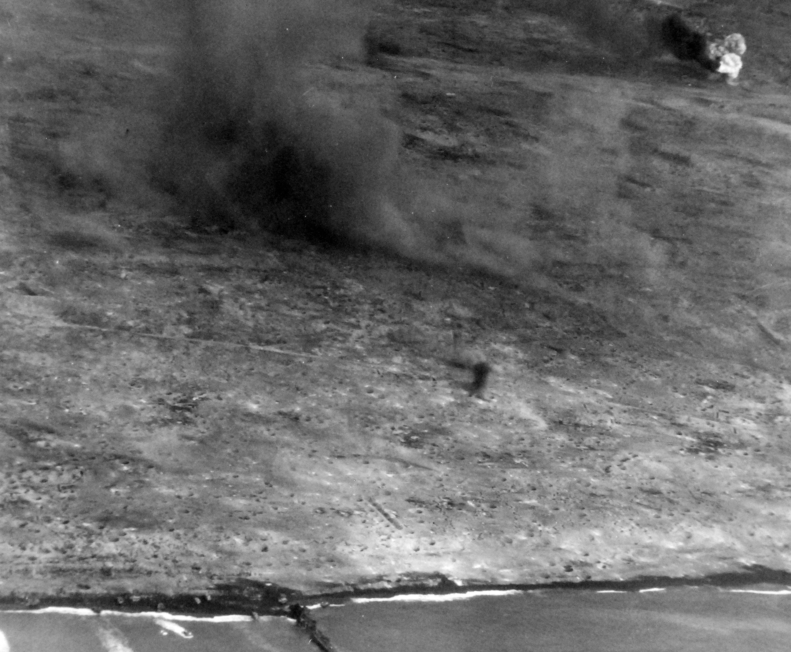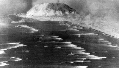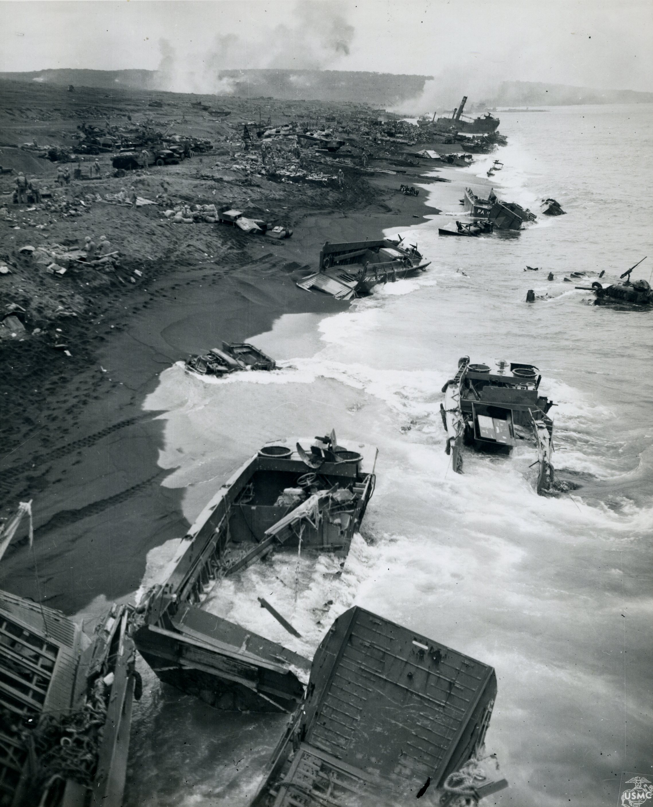 1945년 2월 19일 미국 해병대의 이오지마 강습이 함재기와 함정의 포격 지원을 받으며 시작되었다. 미군의 당초 계획에서는 이오지마를 5일 만에 공략할 예정이었지만, 최종적으로 한 달 이상이 걸리게 되어 미군의 작전 계획을 크게 빗나가게 만들었다.[59]