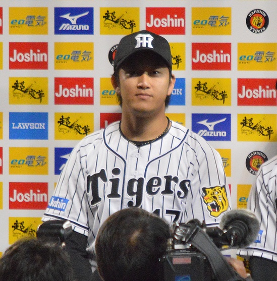 2013년 드래프트 회의에서는 한신 타이거스와 홋카이도 닛폰햄 파이터스의 2개 구단으로부터 1순위 지명을 받았고, 추첨 결과 한신이 교섭권을 획득했다.[119] 이후 11월 10일, 계약금 1억엔, 성과급 5000만엔, 연봉 1500만엔(추정)의 조건으로 입단 계약을 체결했다. 등번호는 '''17'''번으로 결정되었다.[5]