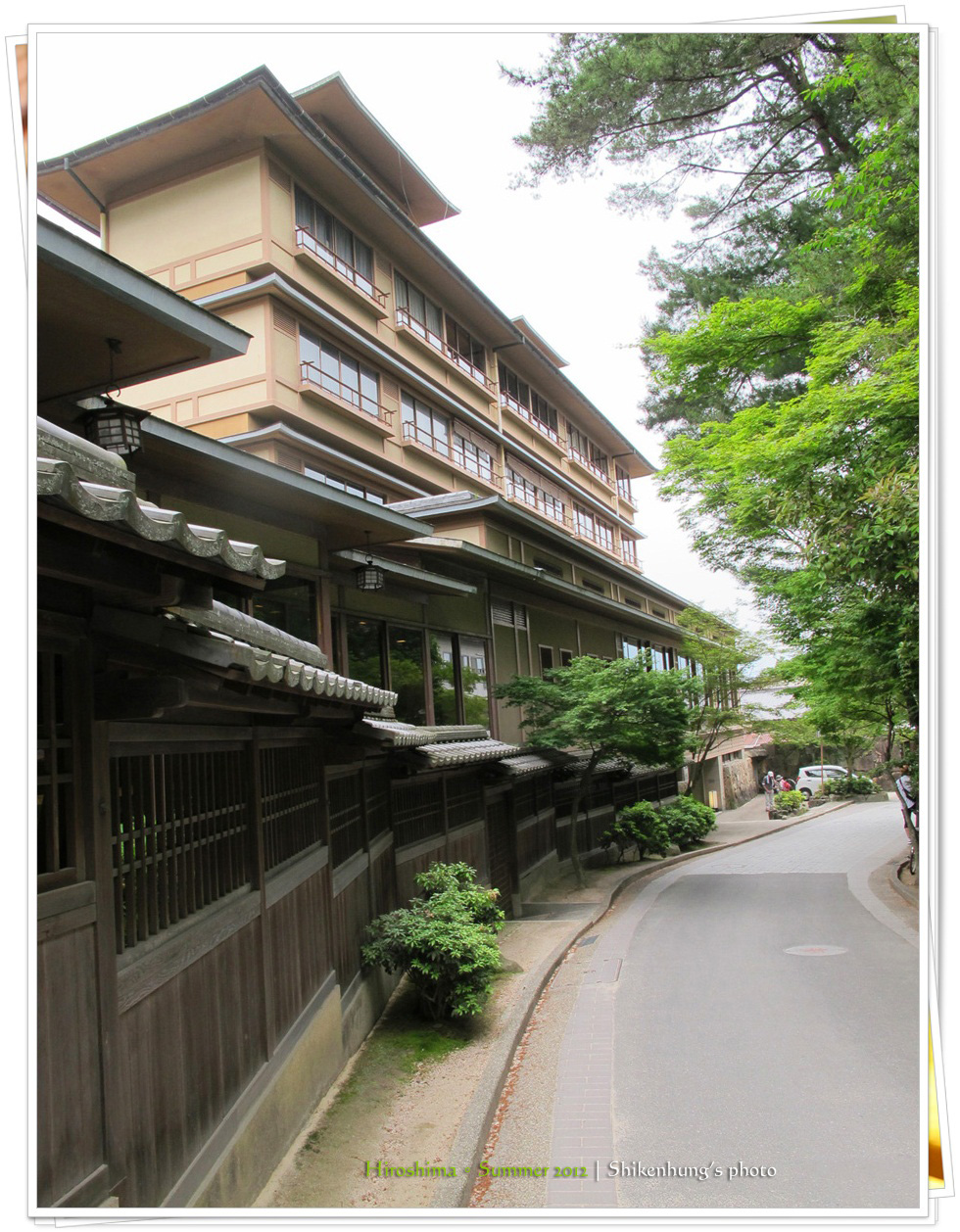 모미지다니 공원(단풍계곡 공원) 입구에 있으며, 이쓰쿠시마 신사까지 걸어서 3분 거리에 있다. 모미지다니 강을 따라 본관, 신관, 5개의 별채로 구성되어 있다. 객실은 모두 다다미방이며, 가이세키 요리를 제공한다.